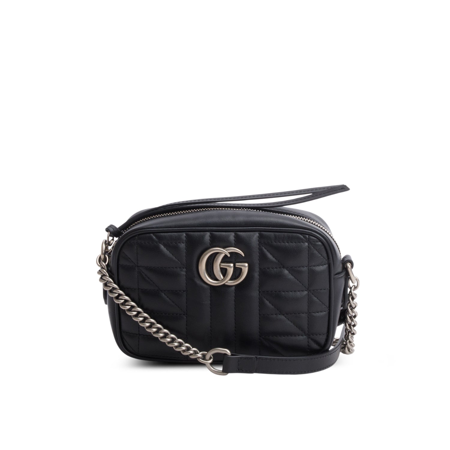 Black Calfskin Matelasse Aria Mini GG Marmont Chain Shoulder Bag