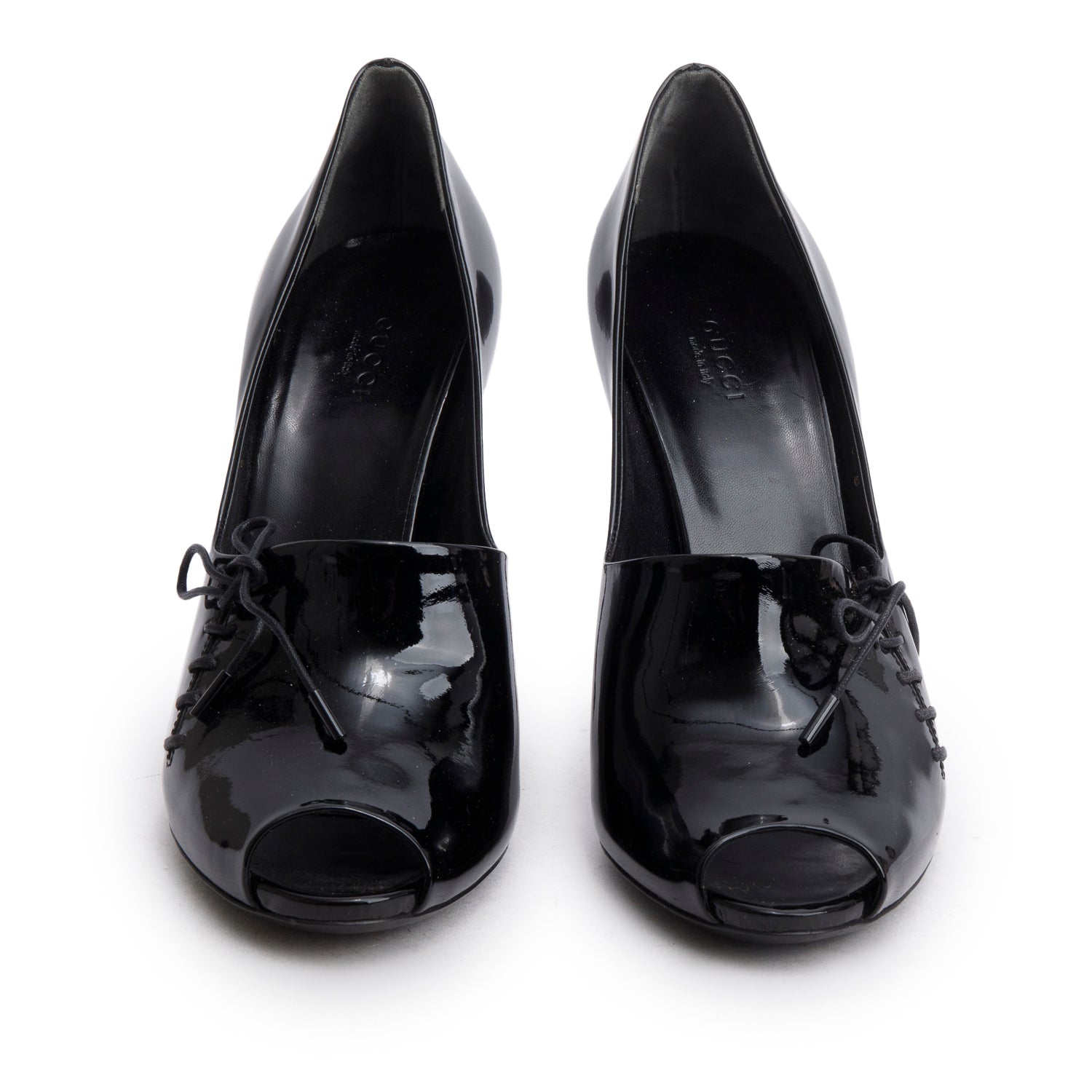 Black Patent Leather Lace Up Peep-Toe Pumps, Size 10 w/ Box