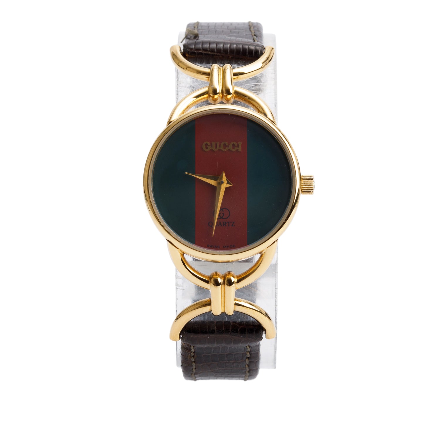 Gold-Plated Stainless Steel 6000 Series 23 MM Quartz Watch Green Red Web Dial