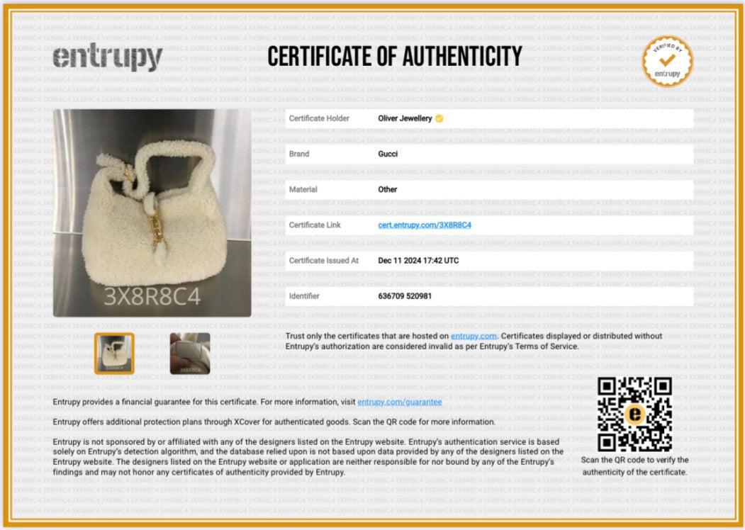 Dust Bag, Strap, Booklet, Tag, Entrupy Certificate of Authenticity