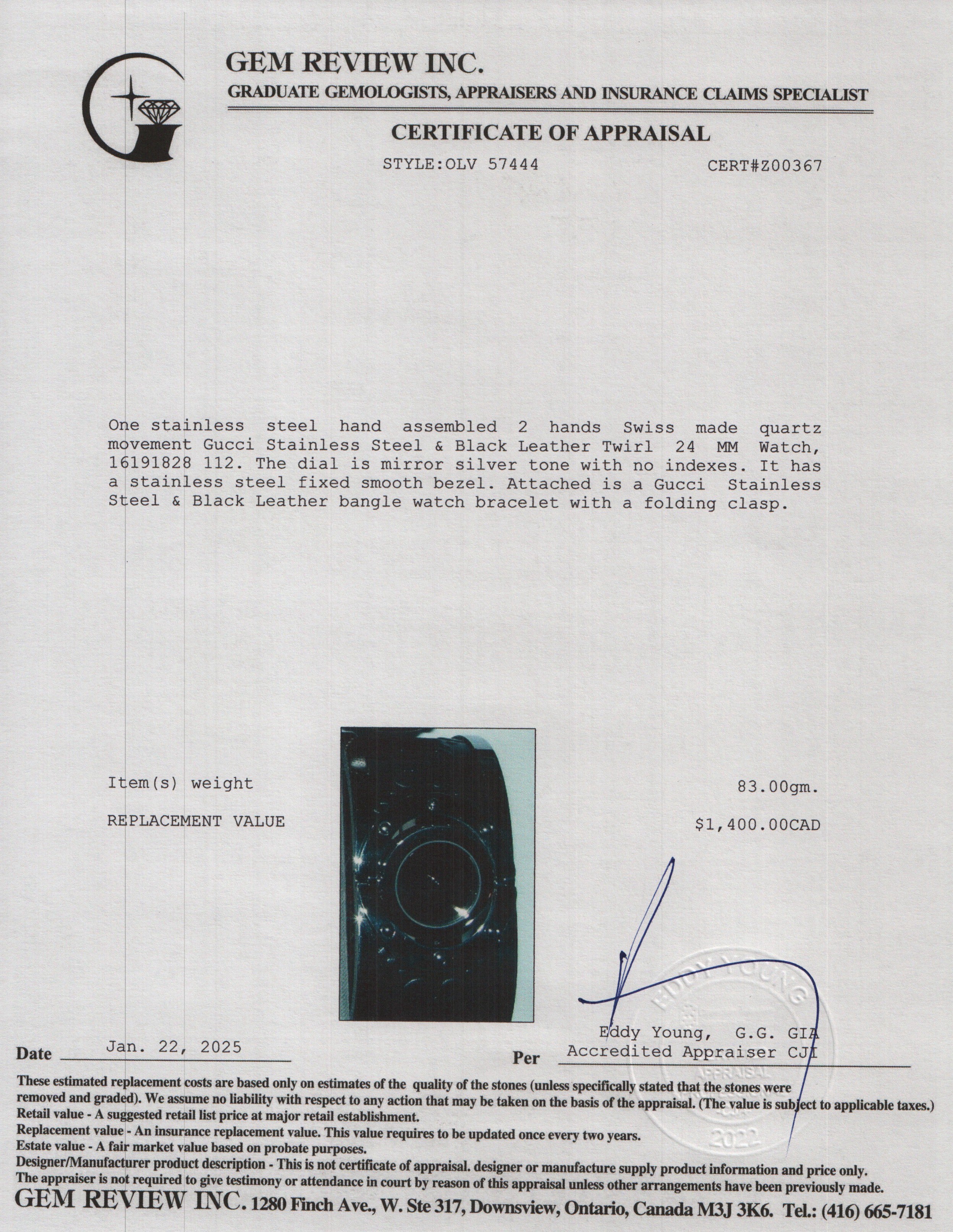 Stainless Steel & Black Leather Twirl 24 MM Watch