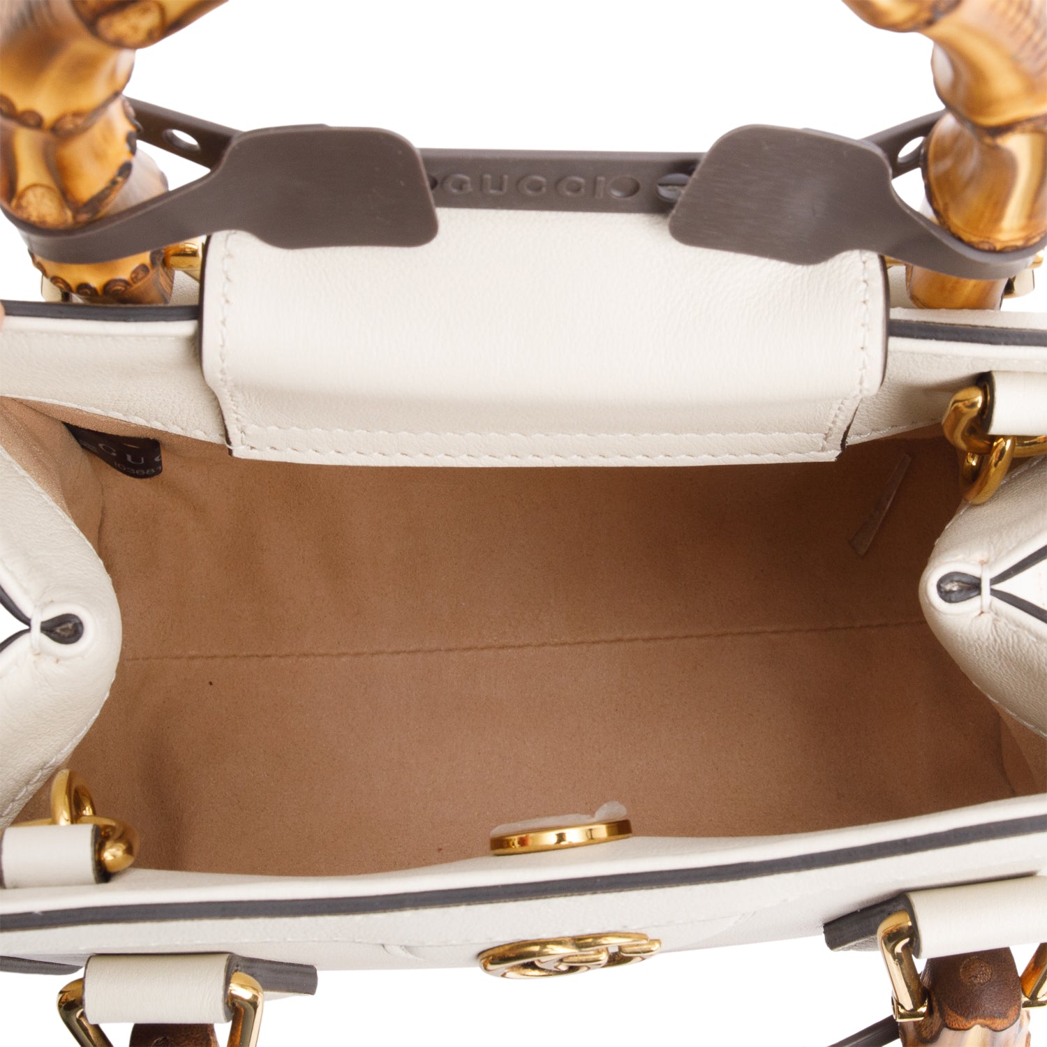 White Calfskin Leather Diana Small Tote Bag w/ Straps