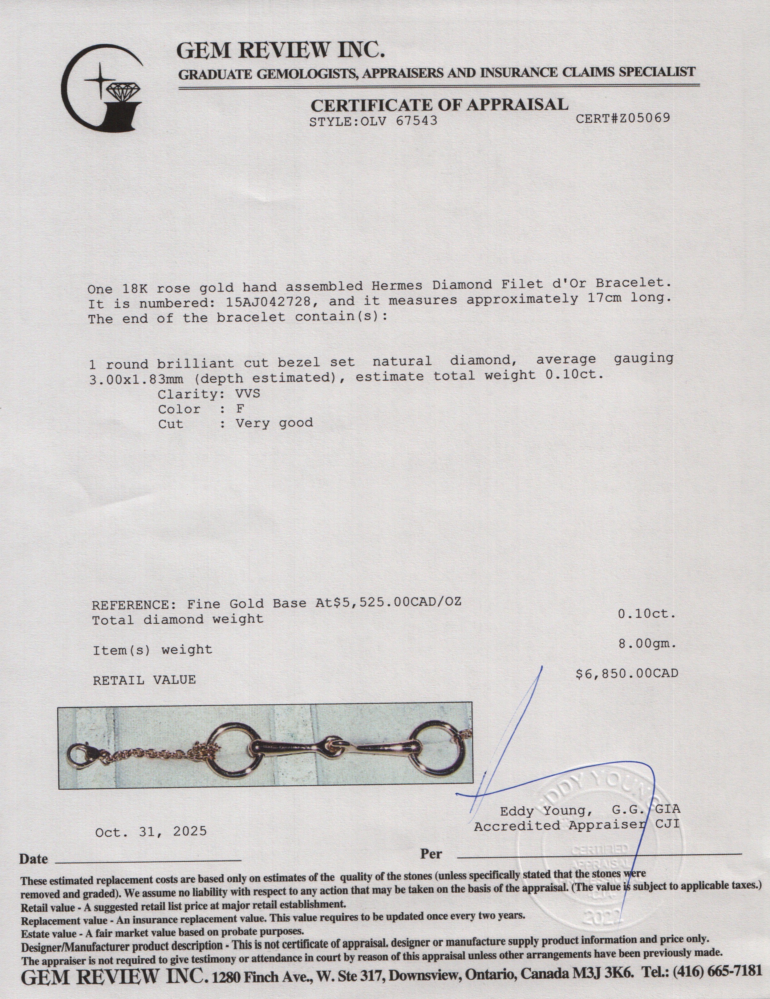 18k Rose Gold Diamond Filet d'Or Bracelet