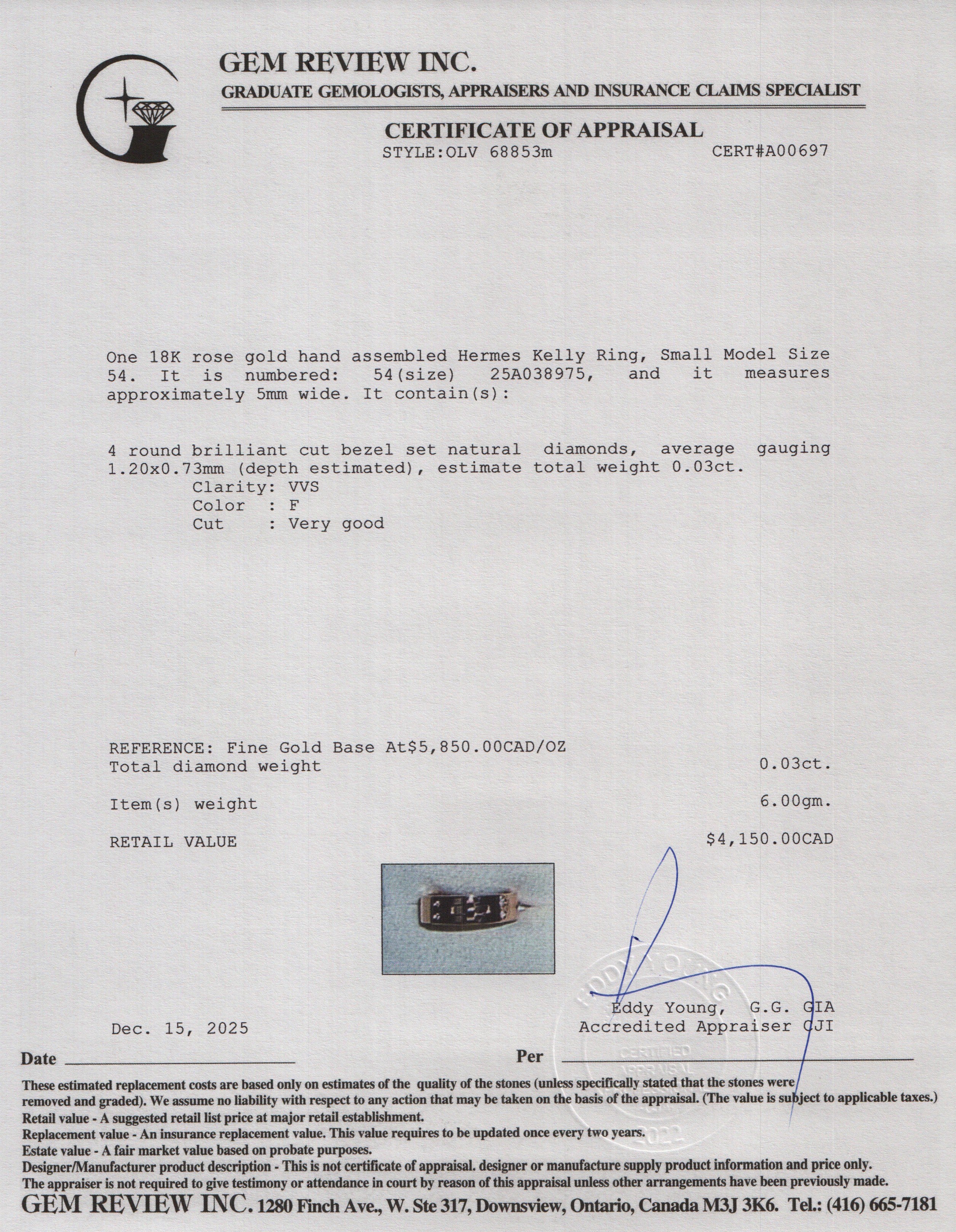 18k Rose Gold Diamond Kelly Ring, Small Model Size 54 6.75 w/ Box