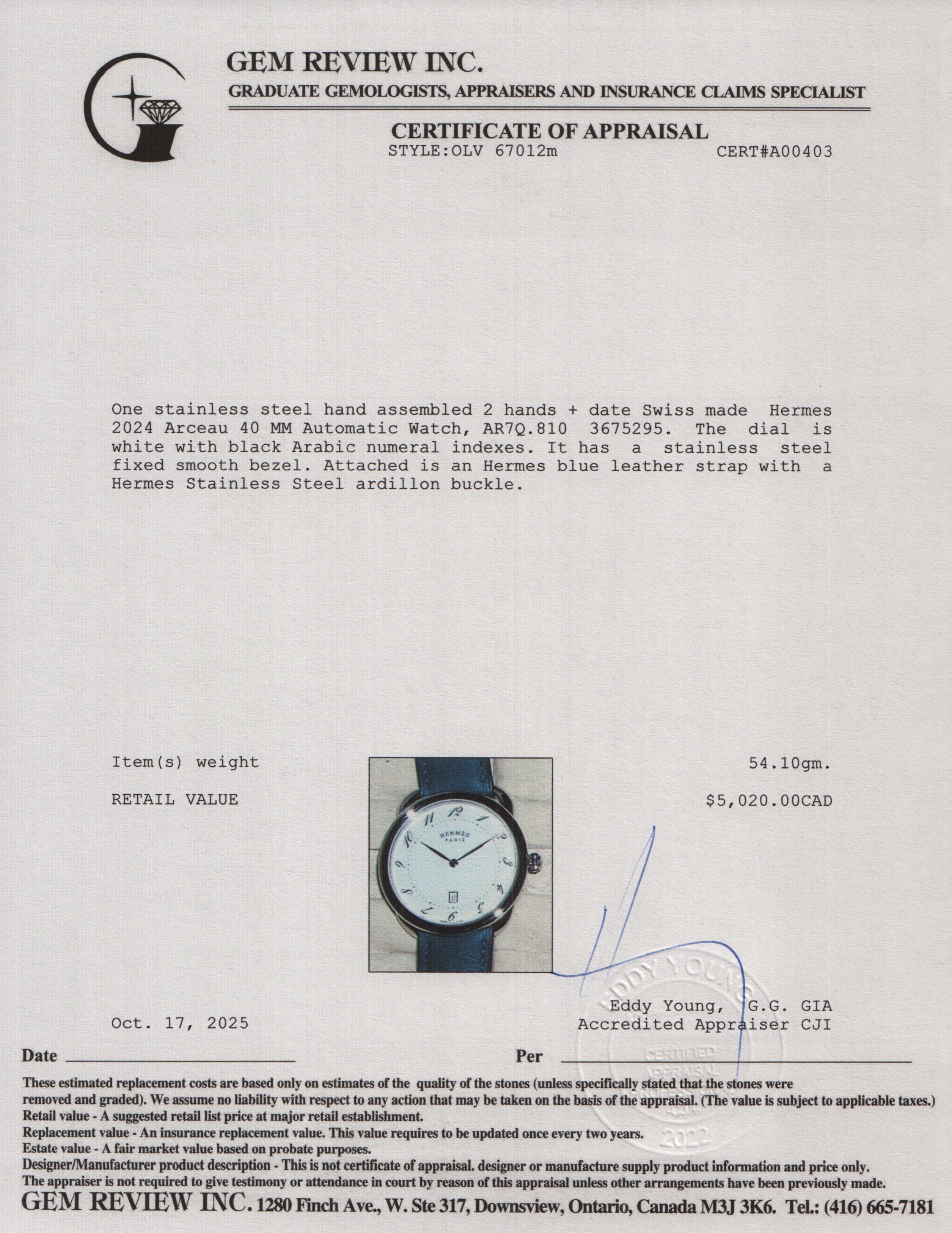 2024 Stainless Steel Arceau 40 MM Automatic Watch AR7Q.810 w/ Box & Papers