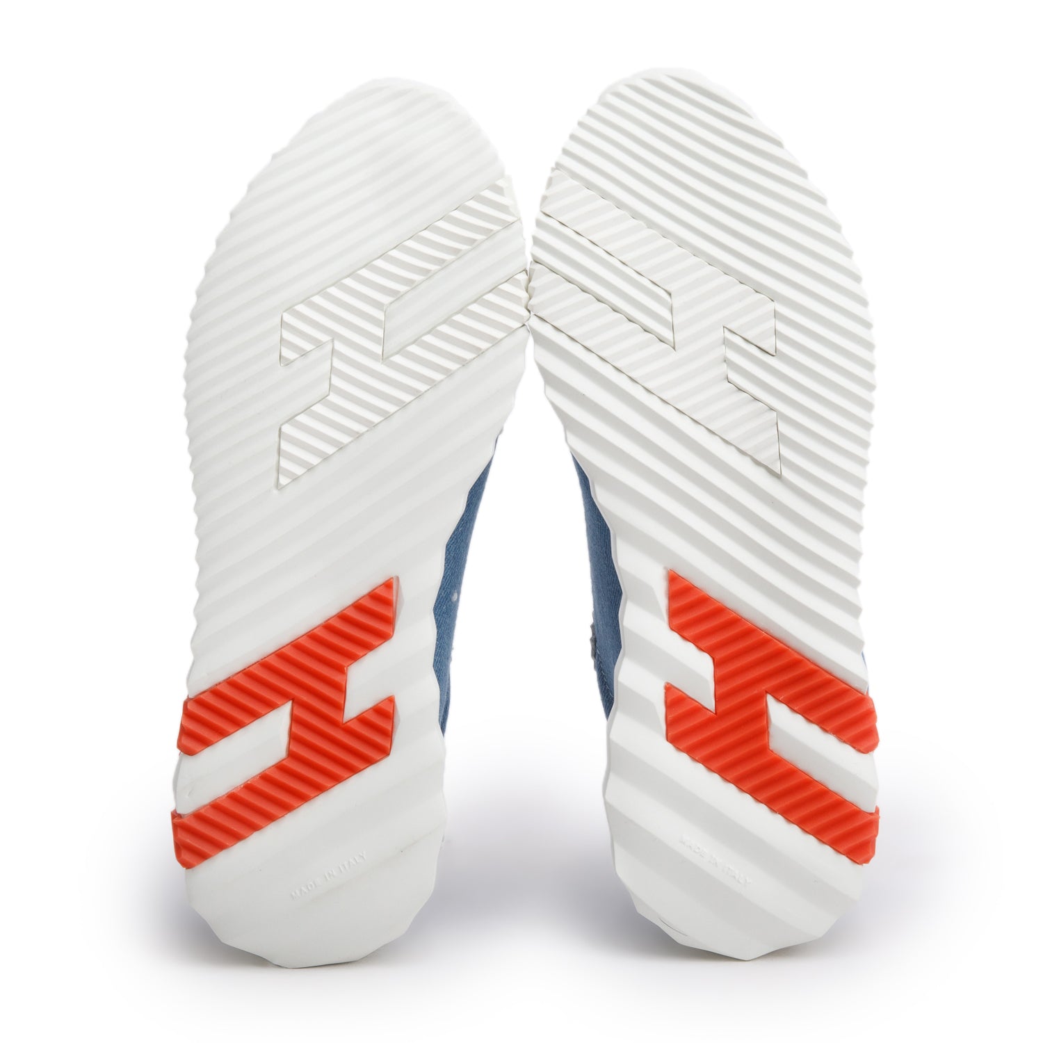 Blue Denim White Calfskin Bouncing Sneakers, Size 37