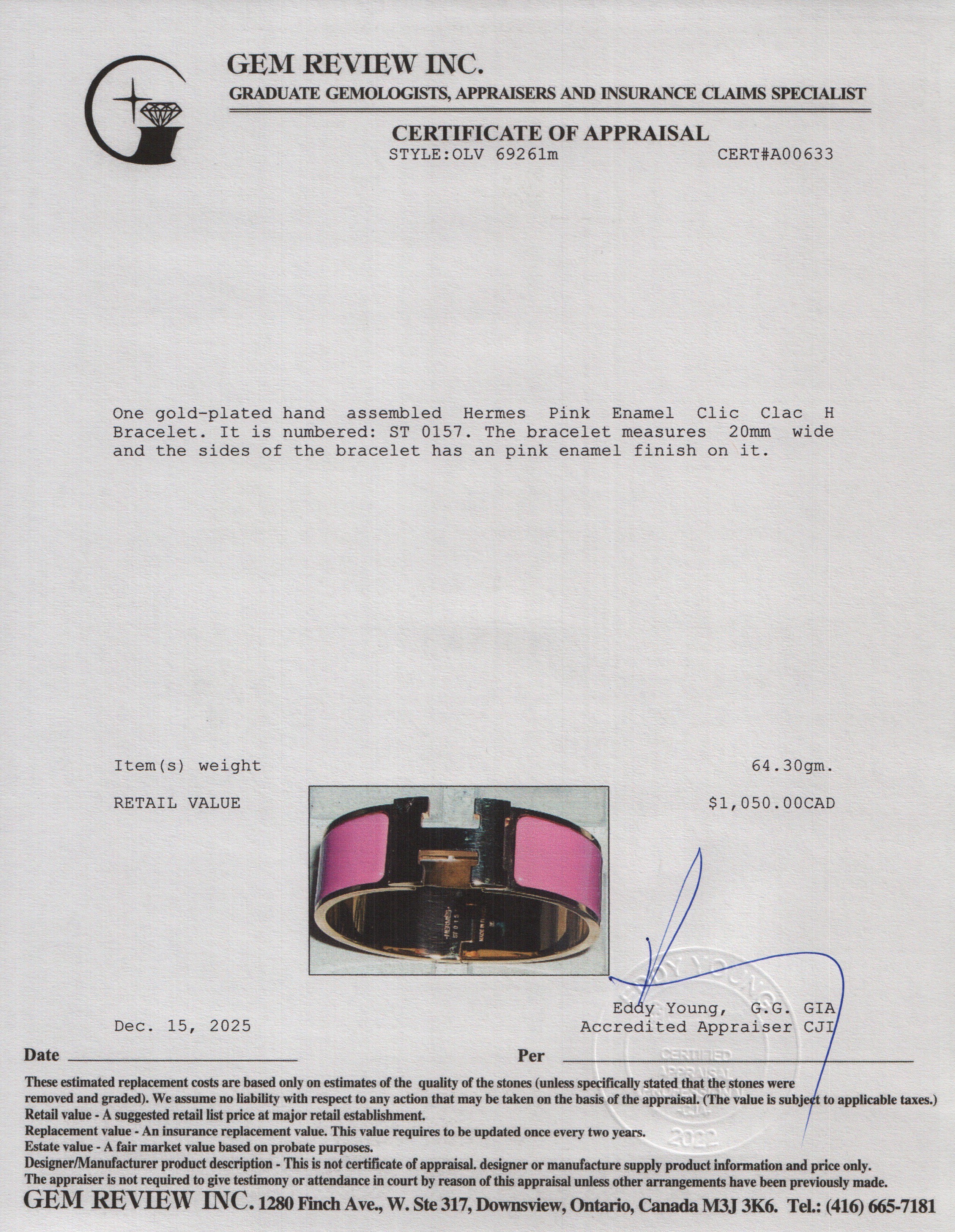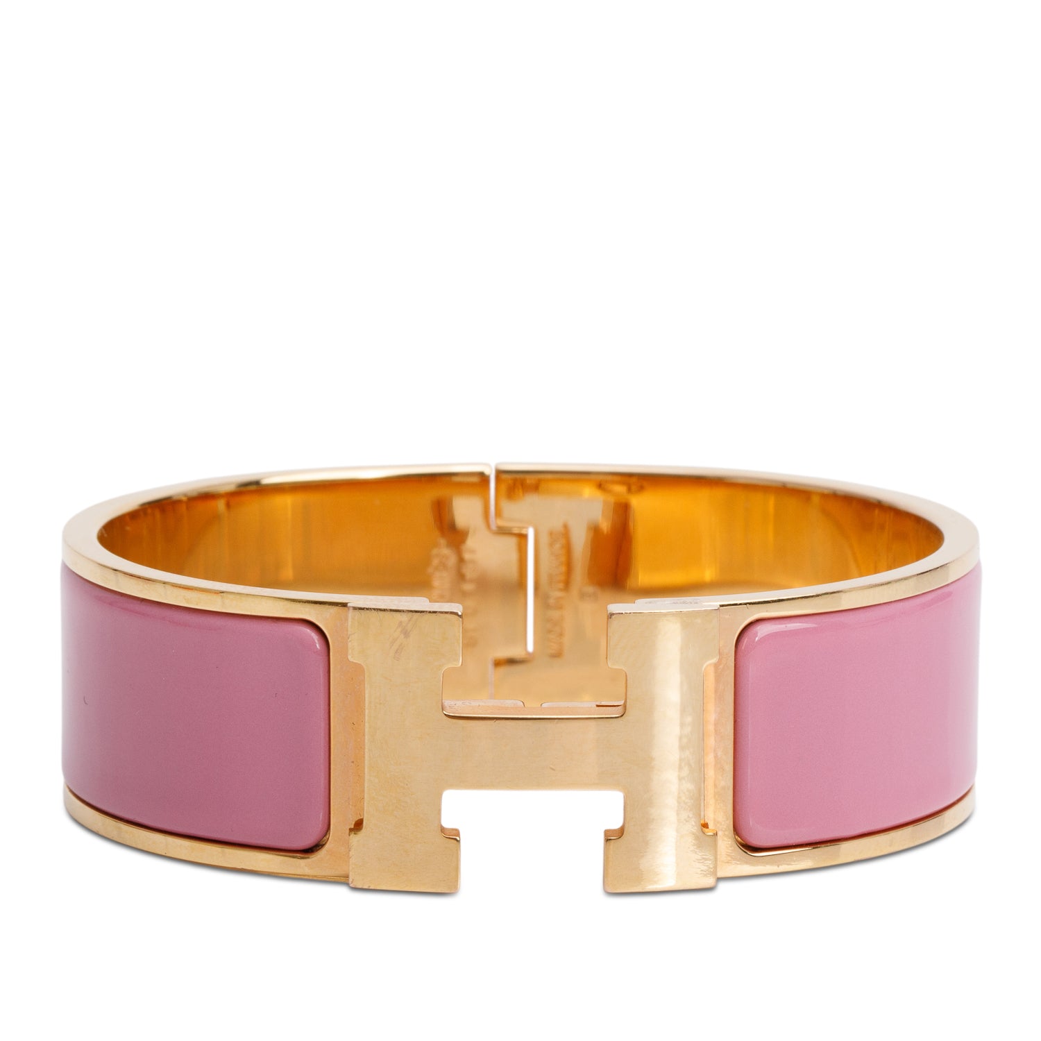 Gold-Plated Pink Enamel Clic Clac H Bracelet w/ Box