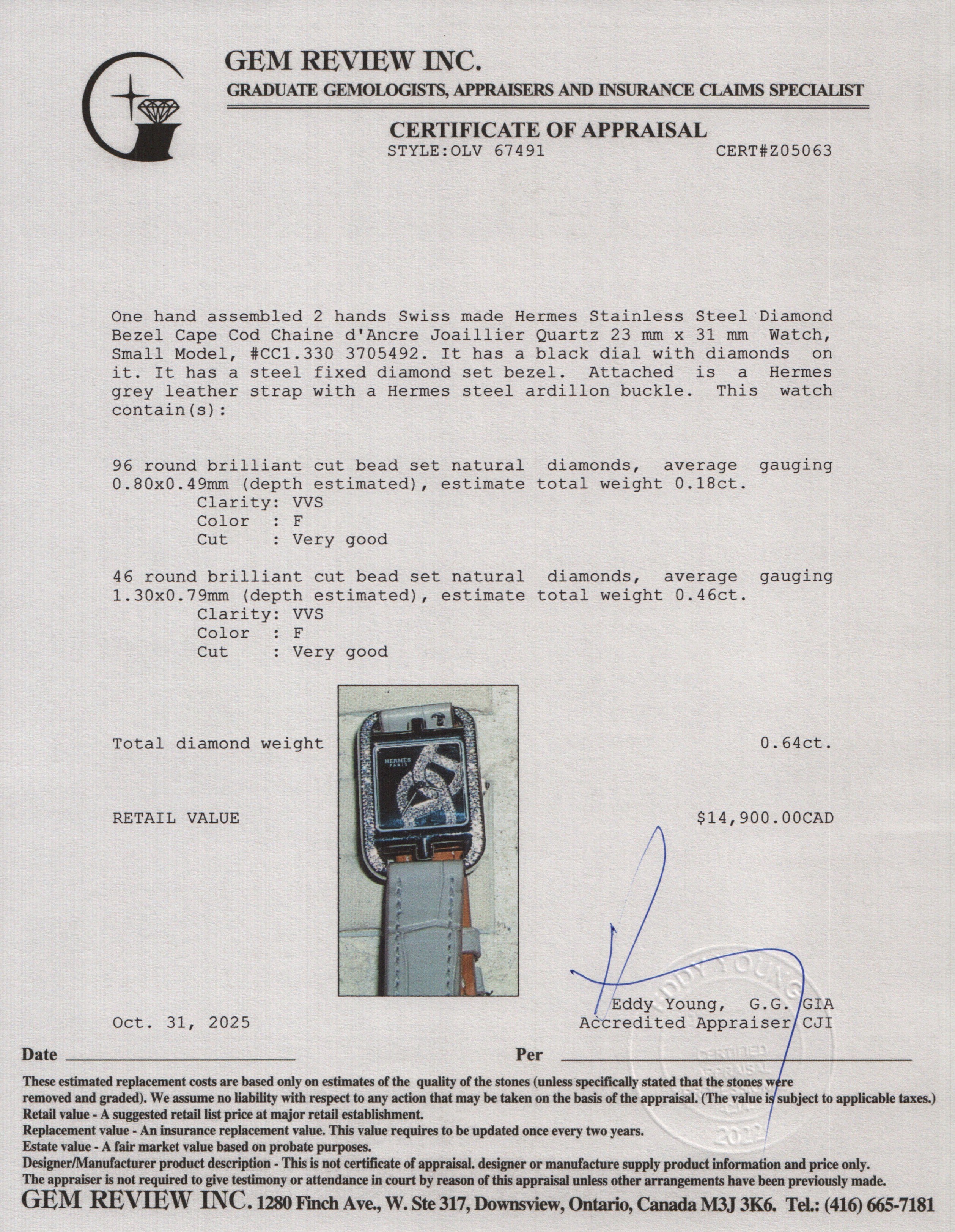 Stainless Steel Diamond Bezel Cape Cod Chaine d'Ancre Joaillier Quartz Watch, Small Model