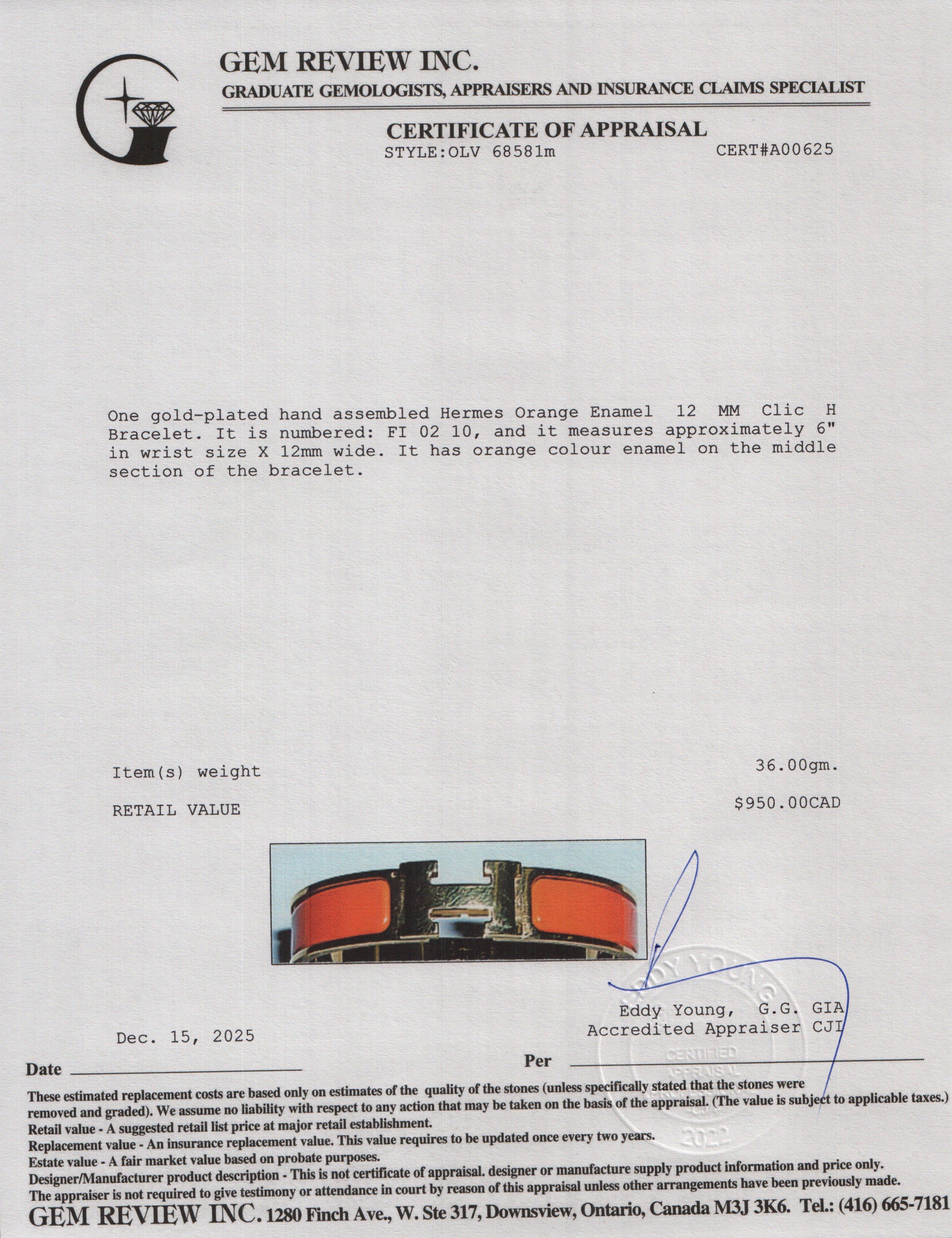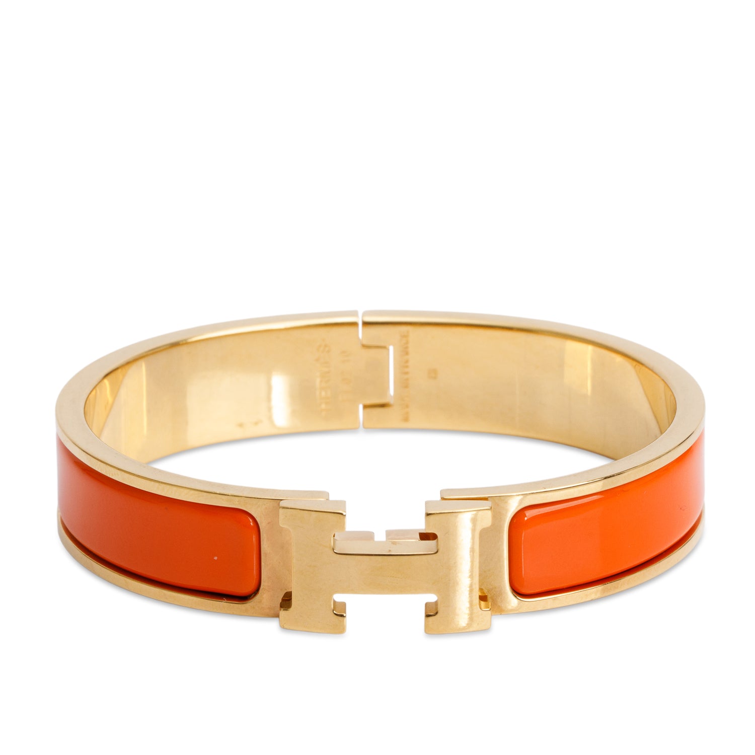 Yellow Gold Plated Orange Enamel 12 MM Clic H Bracelet w/ Box