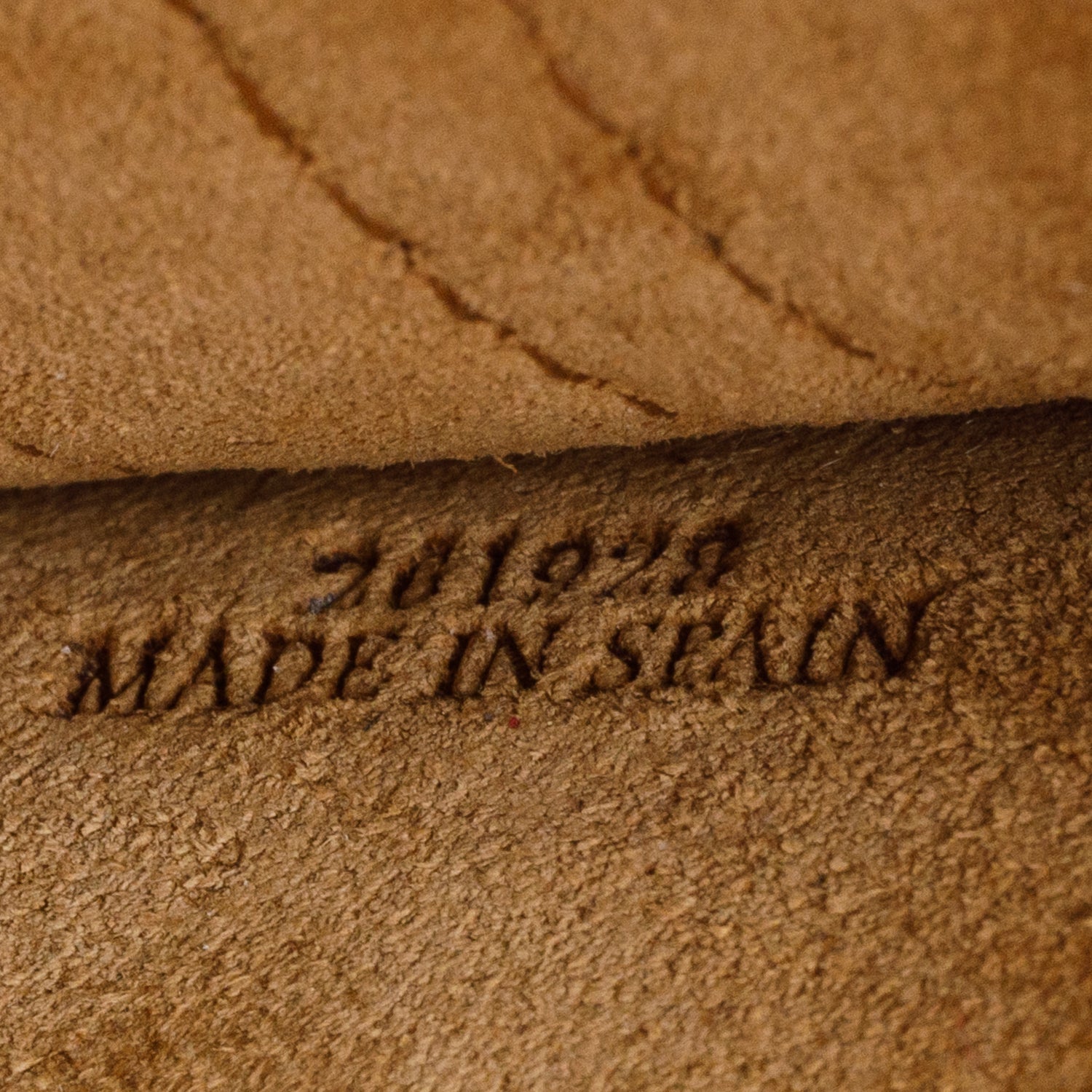 Condition: Very Good; slight scratches and creasing at exterior leather and strap; slight marks at interior suede.