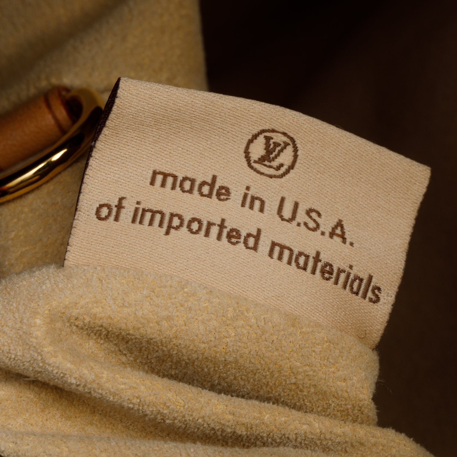 Condition: Very Good; minor scratches at hardware and scuffing at exterior corners; slight creasing and discoloration at handle; minor marks at interior.