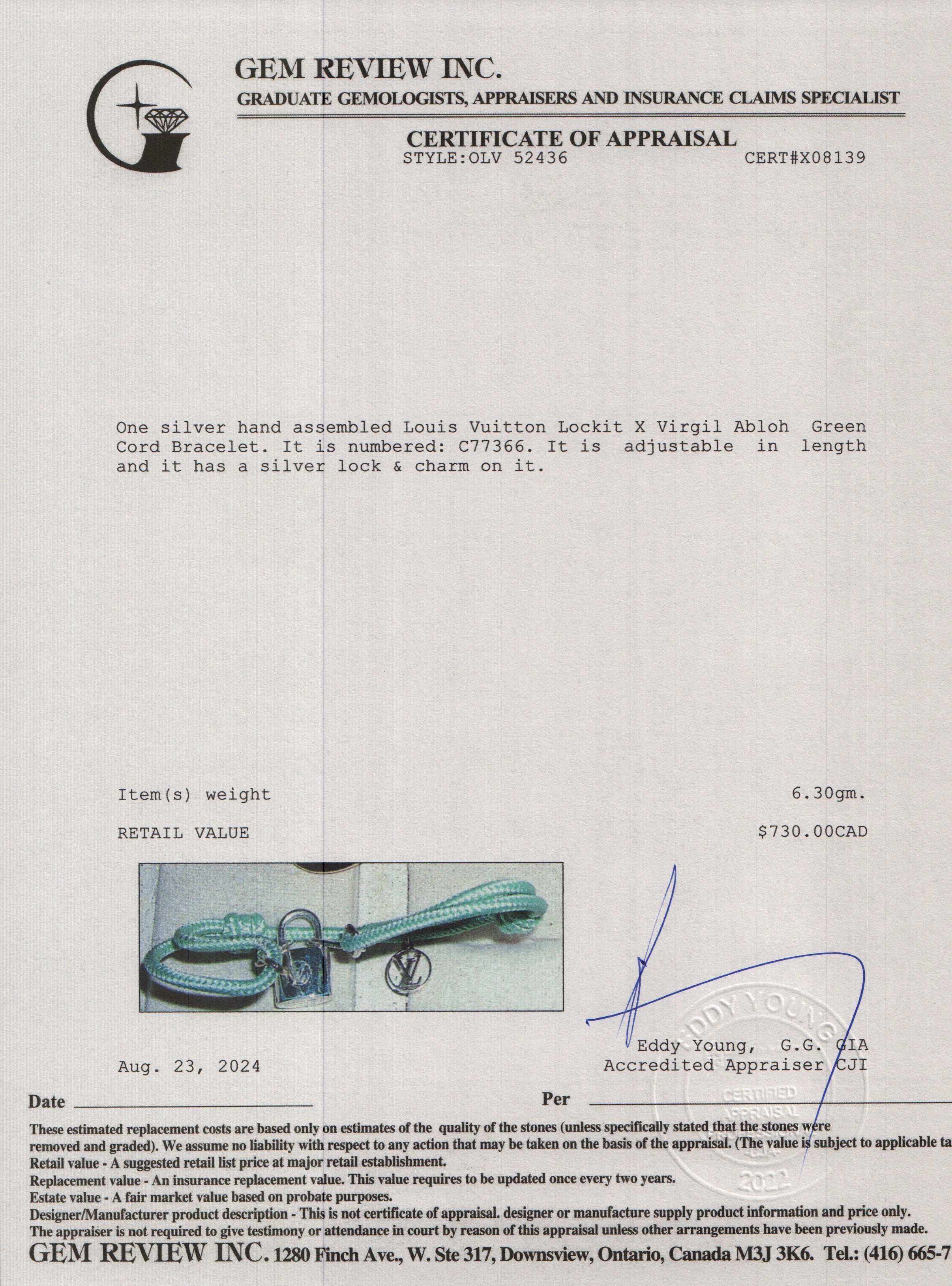 Sterling Silver Lockit X Virgil Abloh Green Cord Bracelet