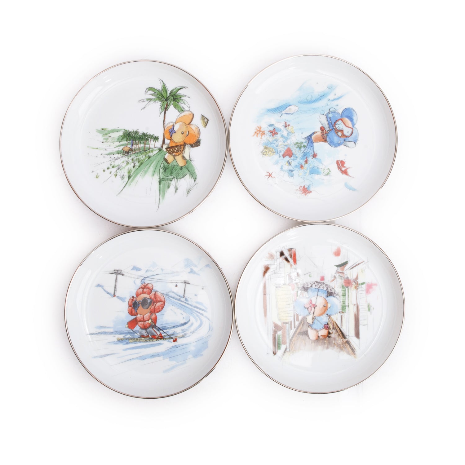 White & Multicolor Porcelaine Vivienne 4 Seasons Set of 4 Plates w/ Box