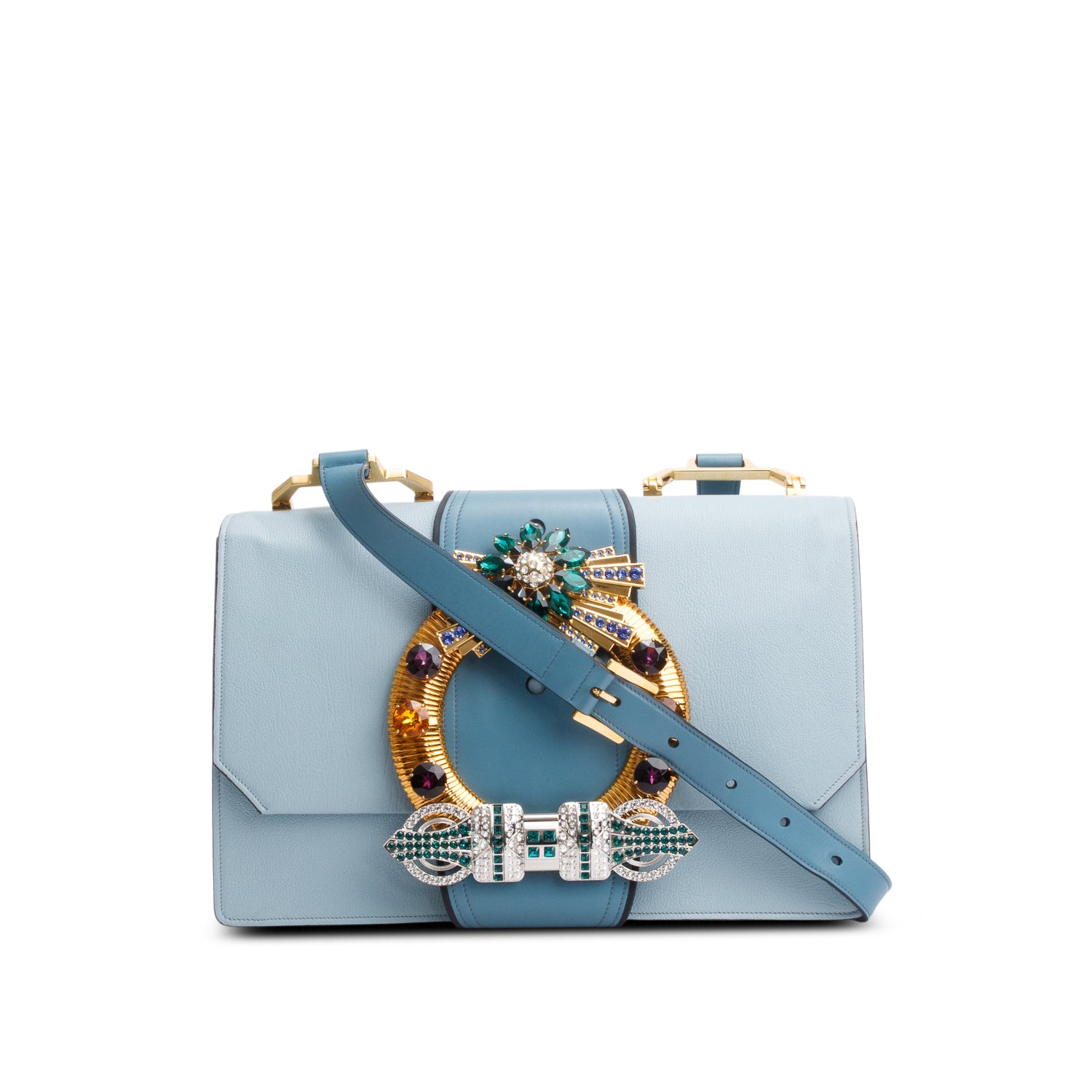 Blue Leather Lady Jewelled Madras XL Flap Bag