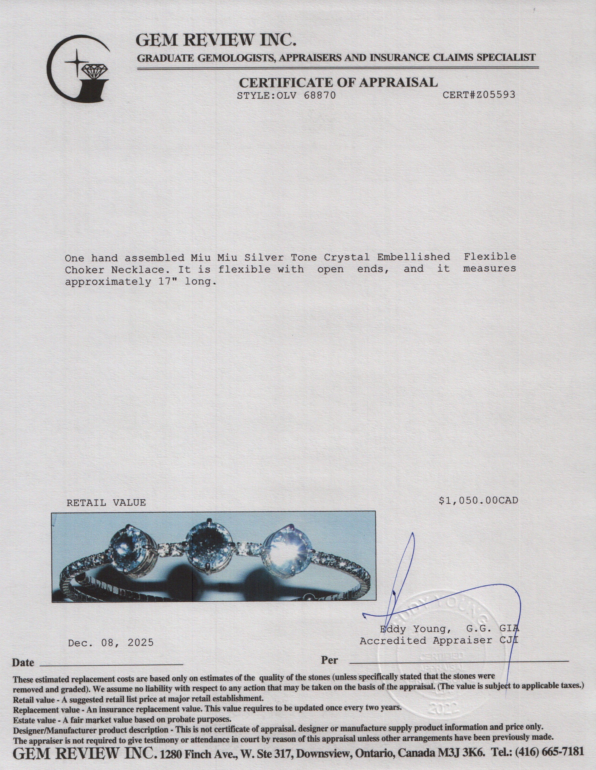Silver Tone Crystal Embellished Flexible Choker Necklace