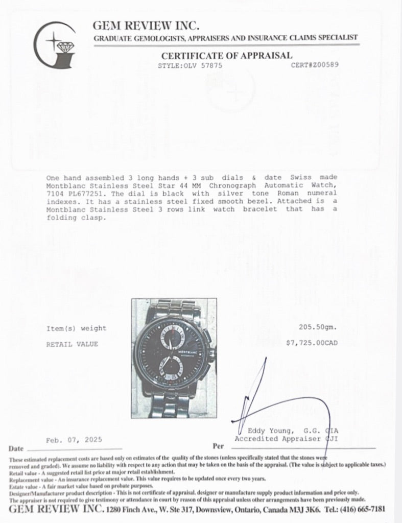 Stainless Steel Star 44 MM Chronograph Automatic Watch