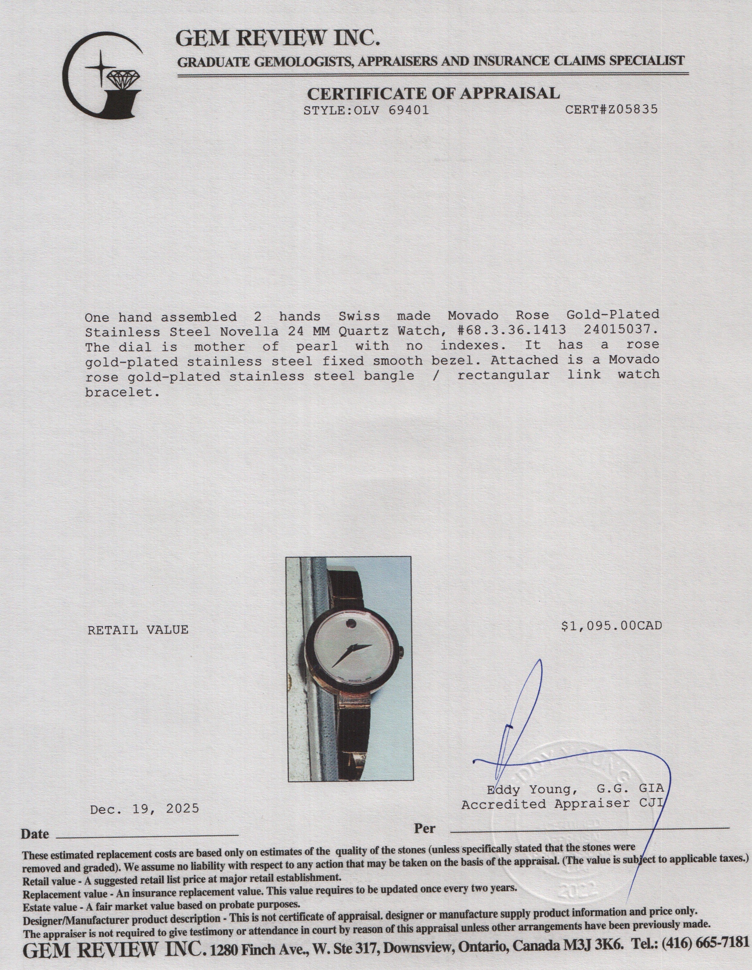 Rose Gold-Plated Stainless Steel Novella 24 MM Quartz Watch Mother of Pearl Dial w/ Box