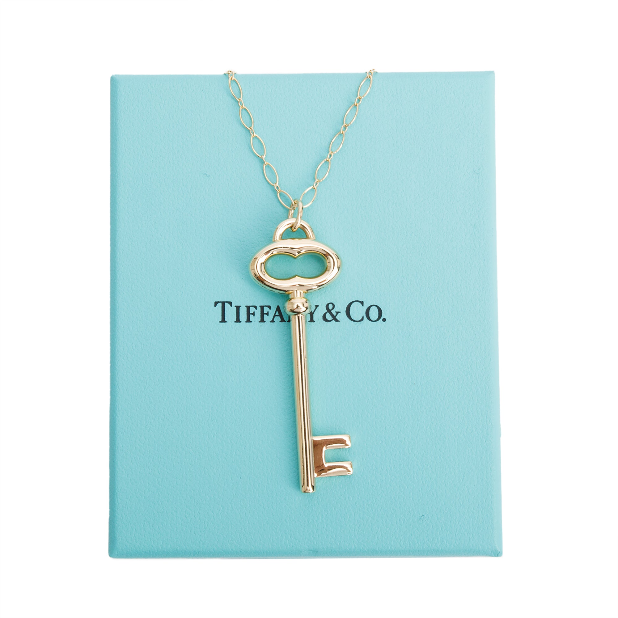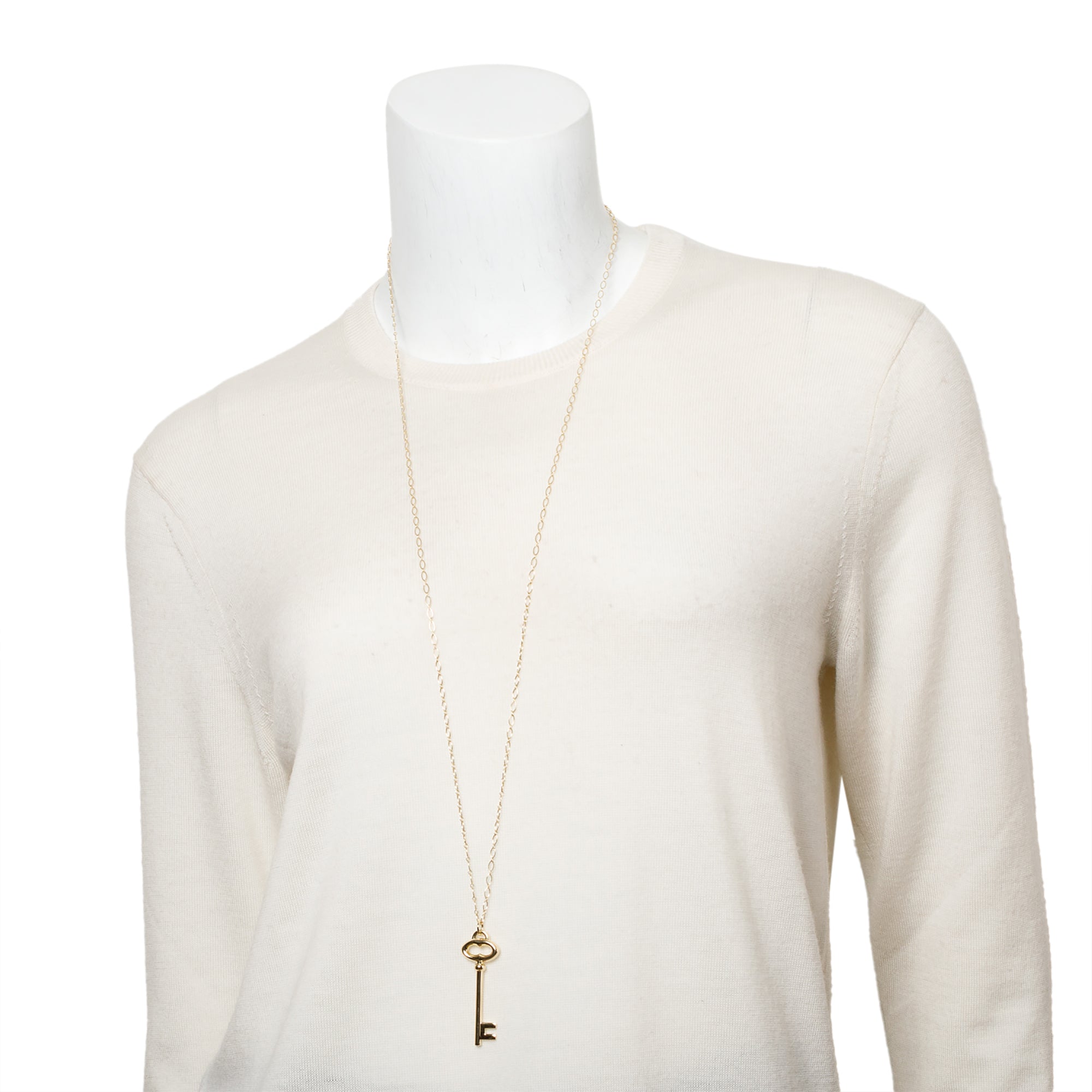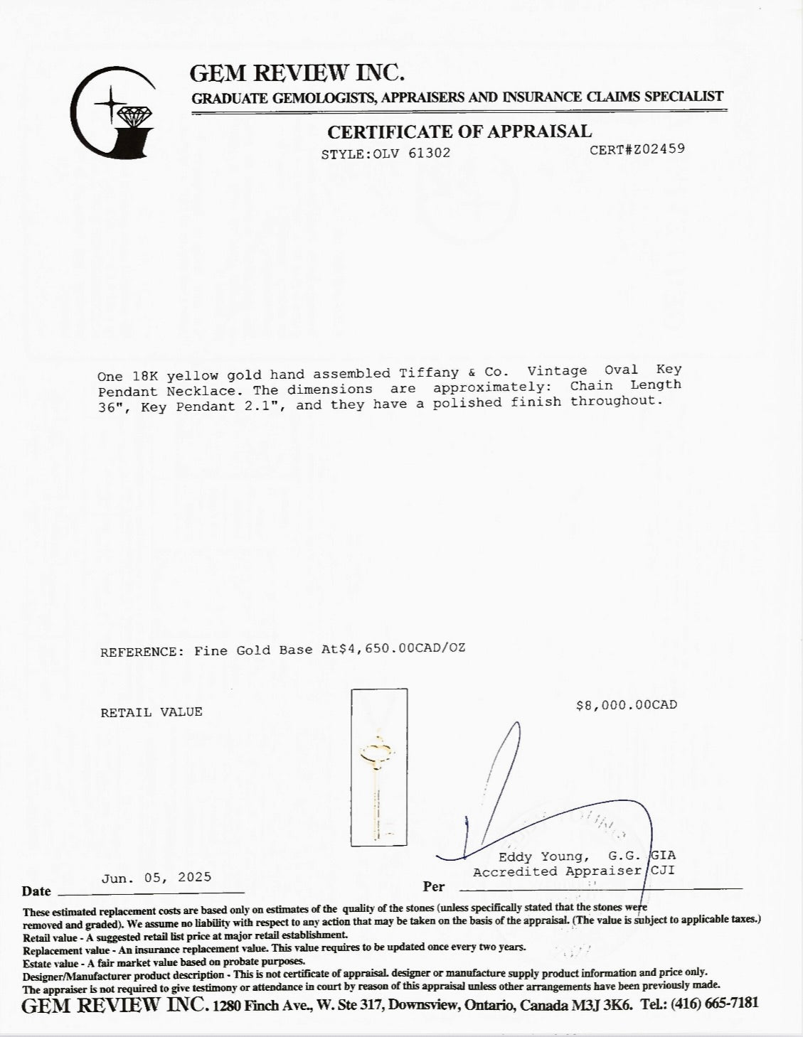 18k Yellow Gold Vintage Oval Key Pendant Necklace w/ Box