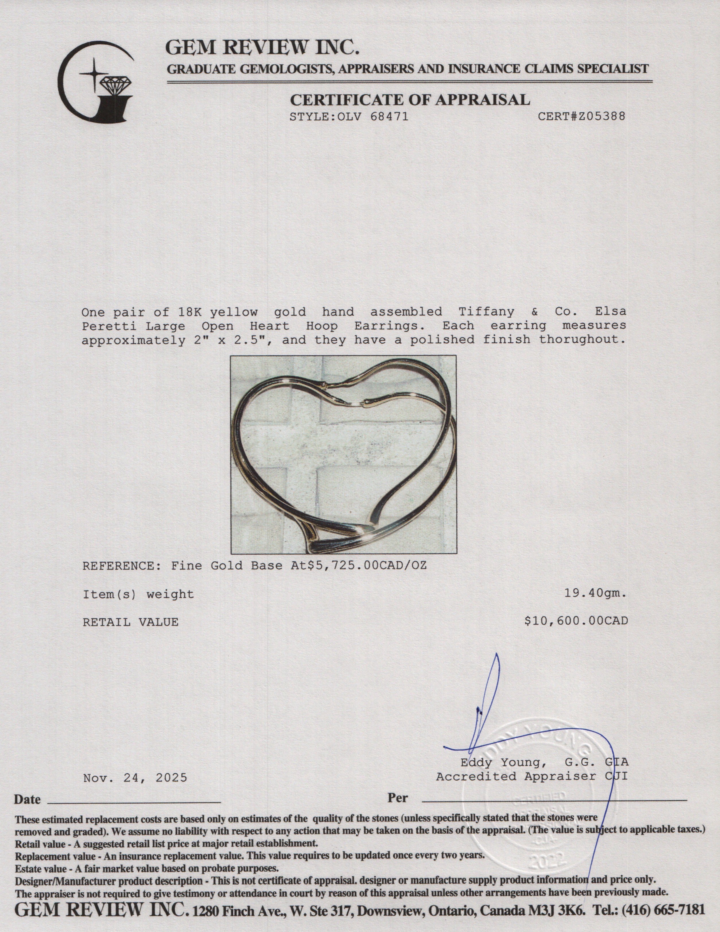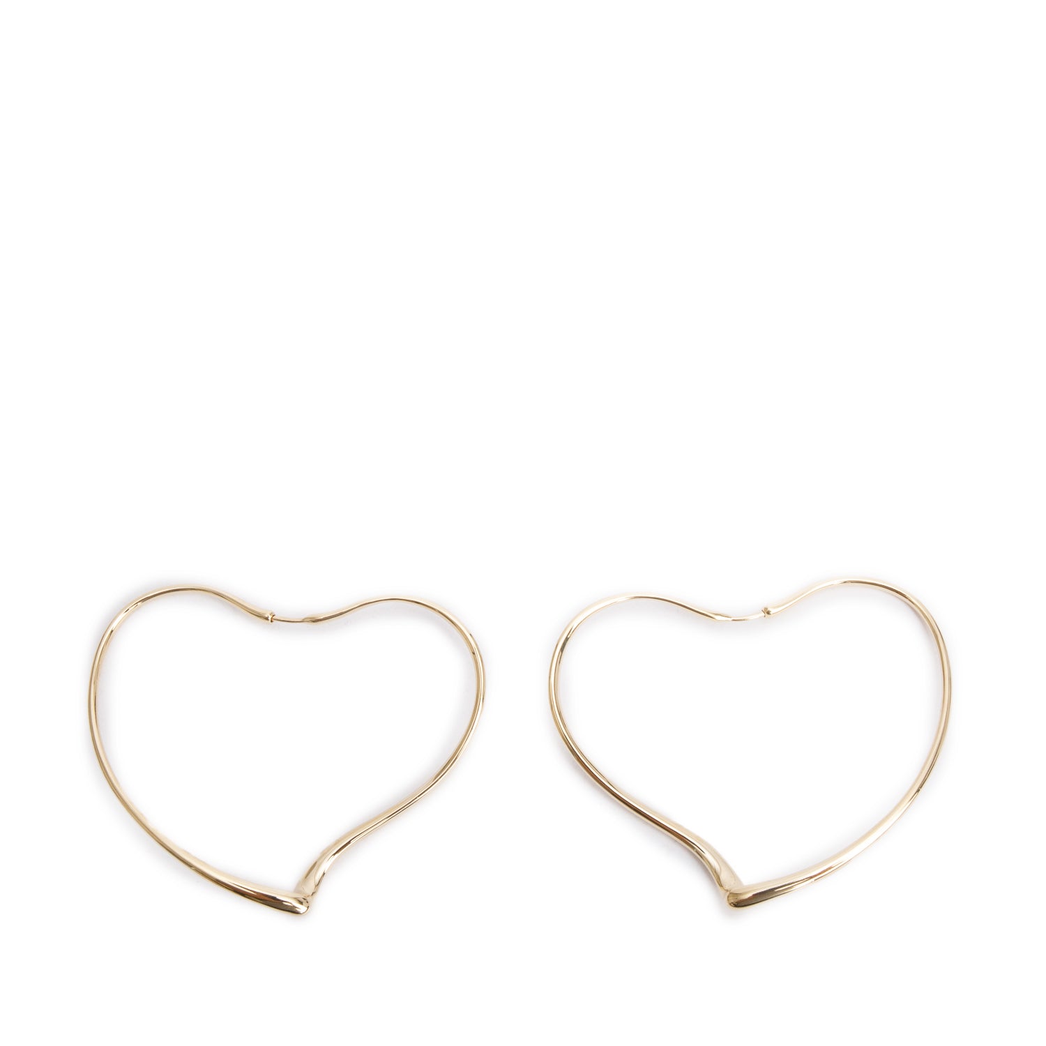 Elsa Peretti 18k Yellow Gold Large Open Heart Hoop Earrings w/ Box