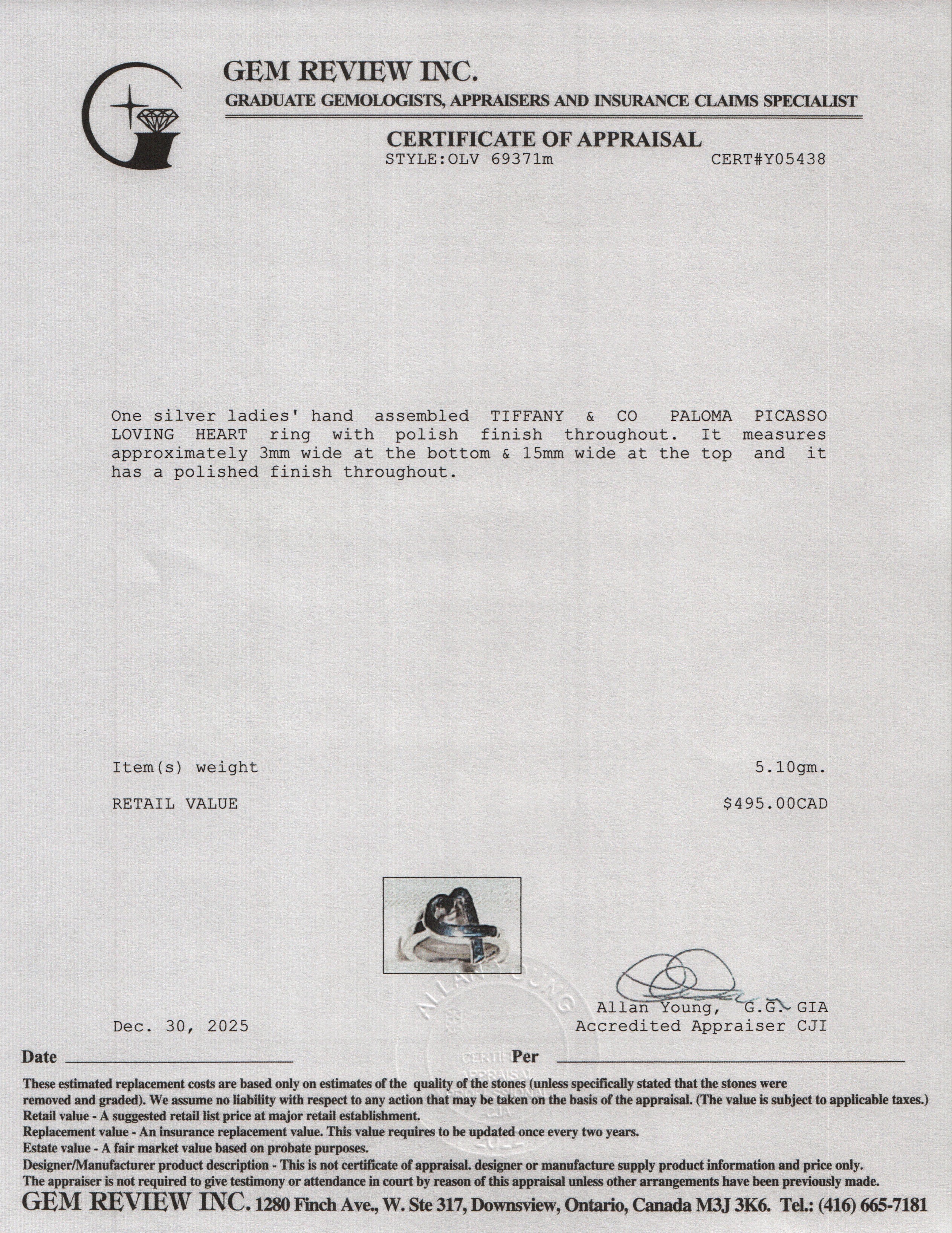 Paloma Picasso Sterling Silver Loving Heart Ring, Size 6