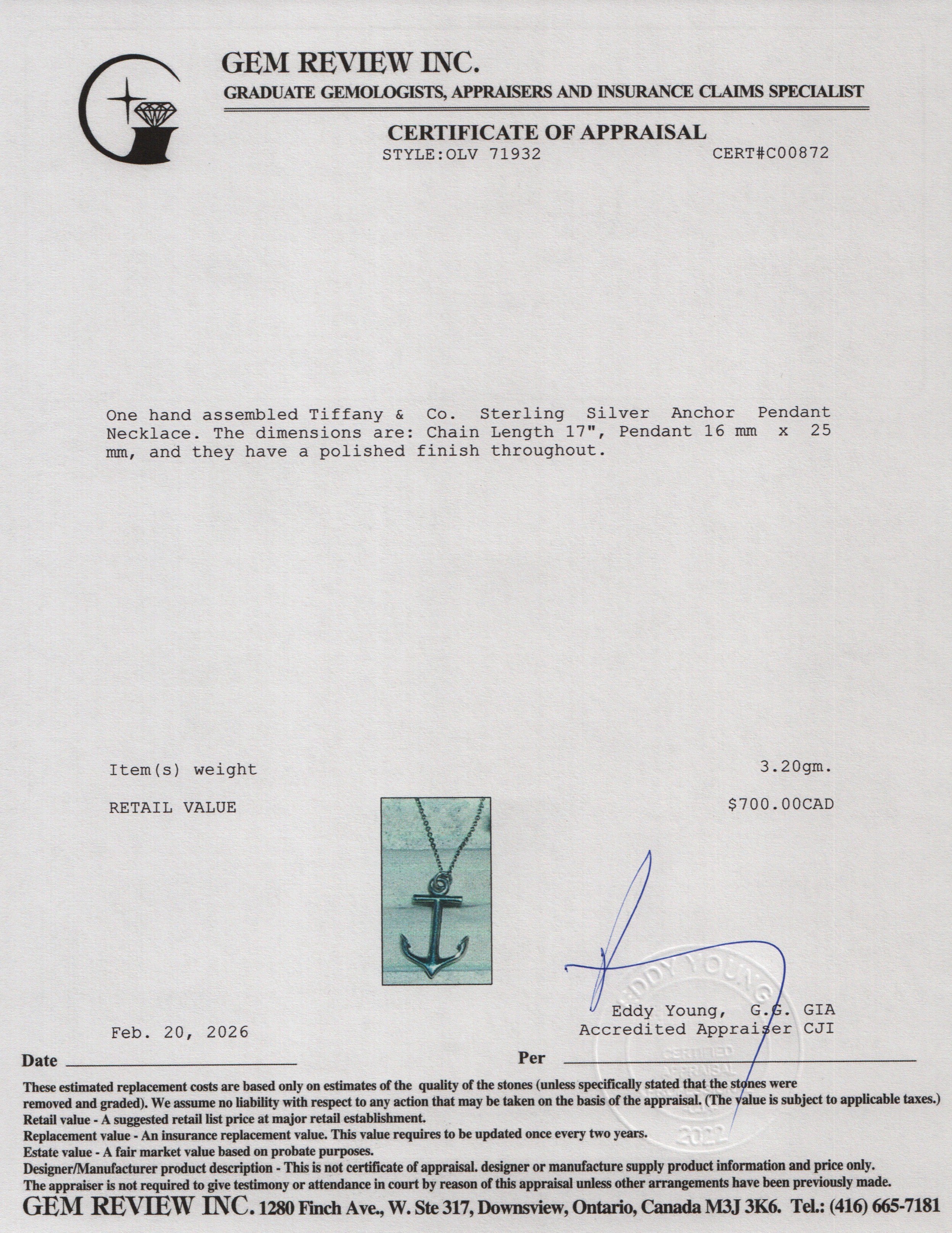 Chain Length 17", Pendant 16 mm x 25 mm