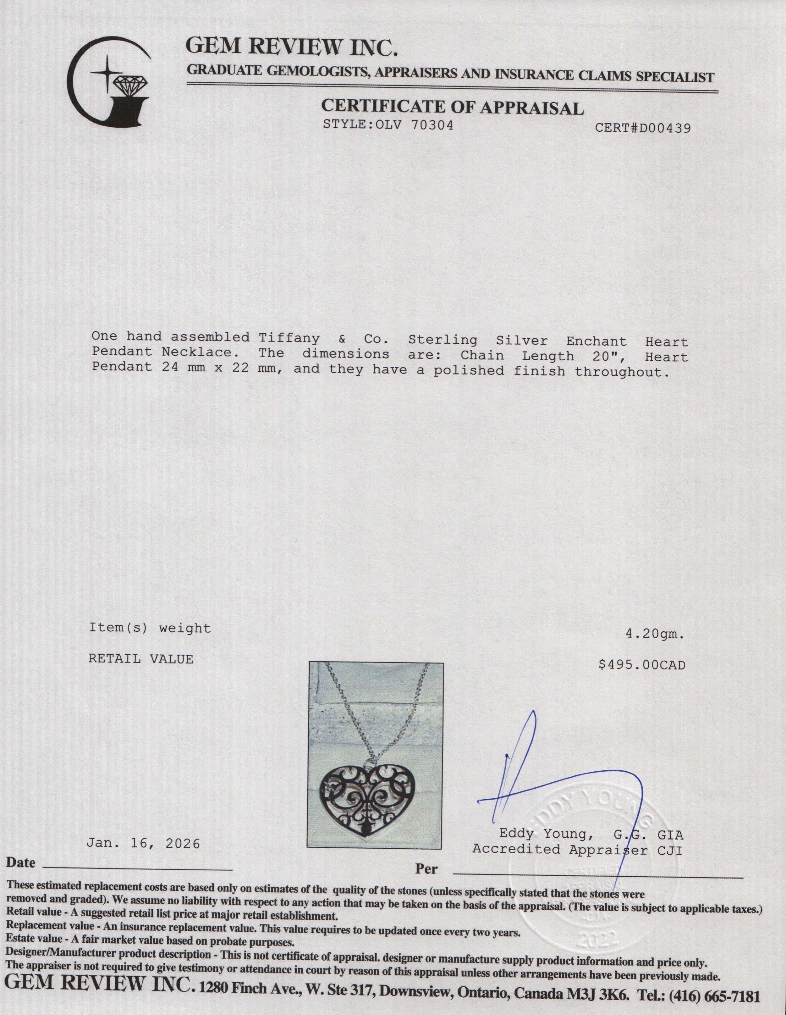 Chain Length 20", Heart Pendant 24 mm x 22 mm