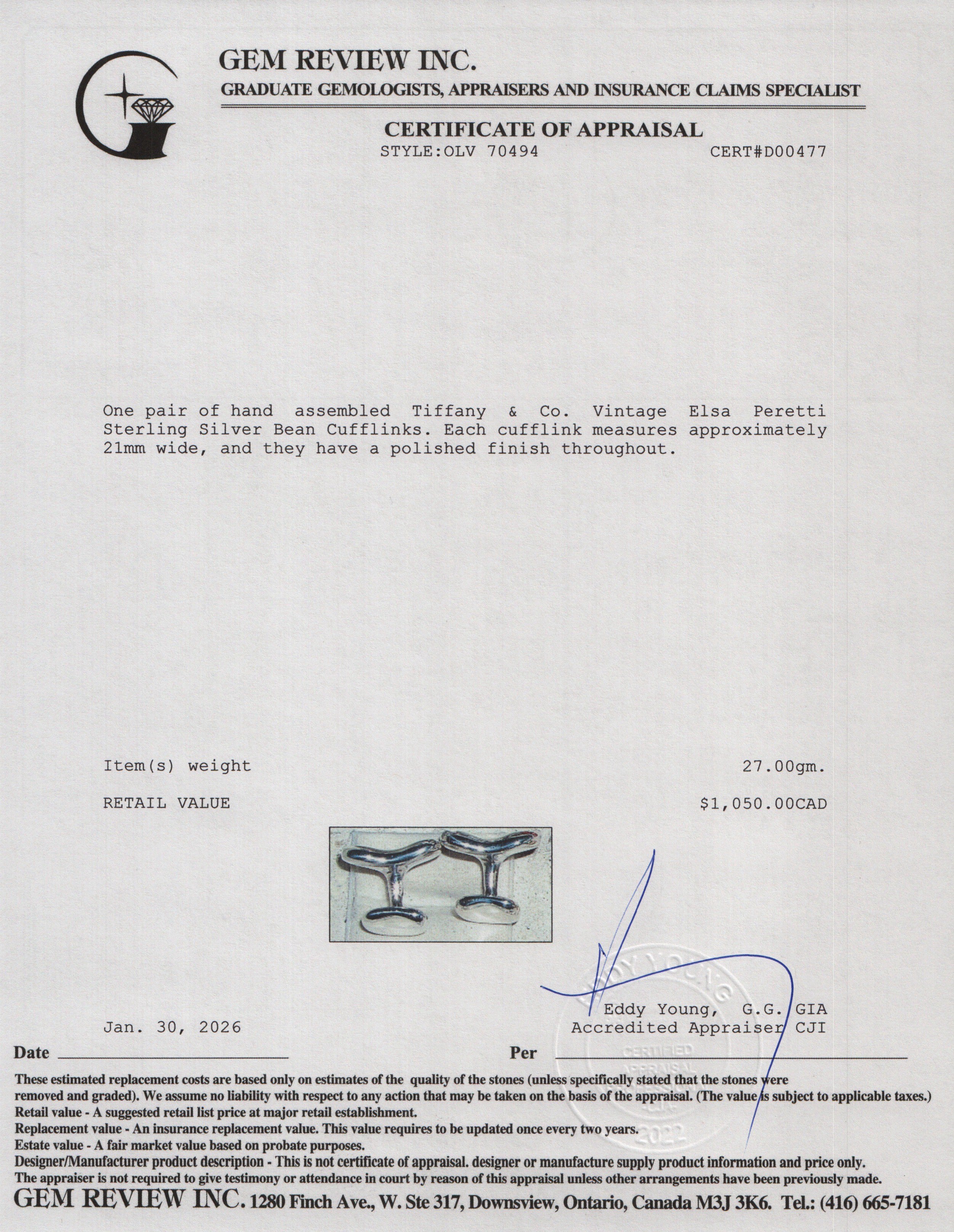 Vintage Elsa Peretti Sterling Silver Bean Cufflinks