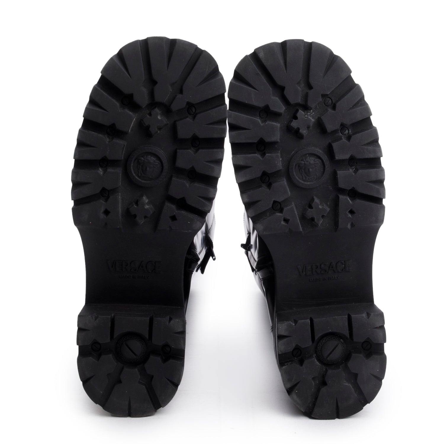 Black Patent Leather Medusa Knee High Boots, Size 41 w/ Box