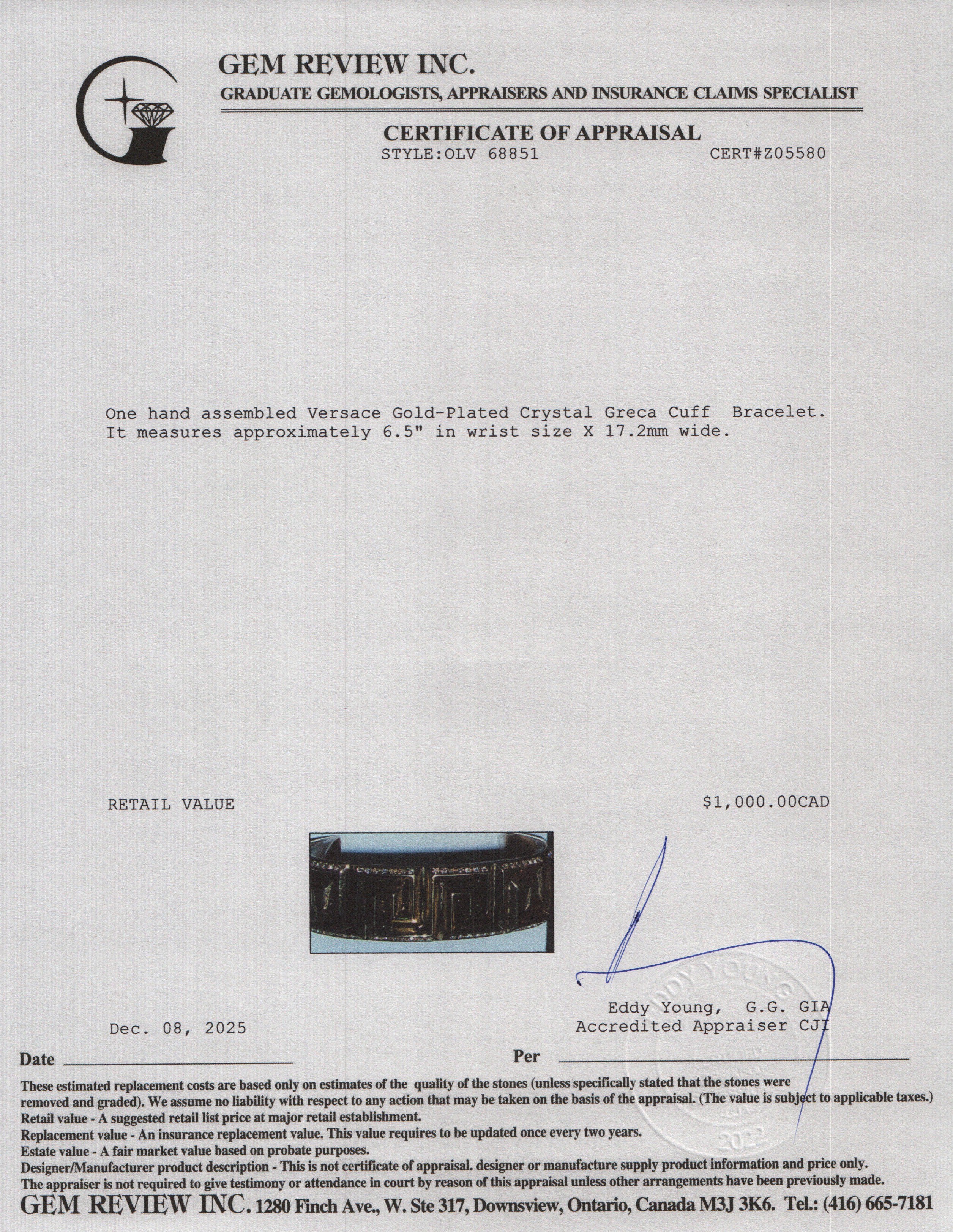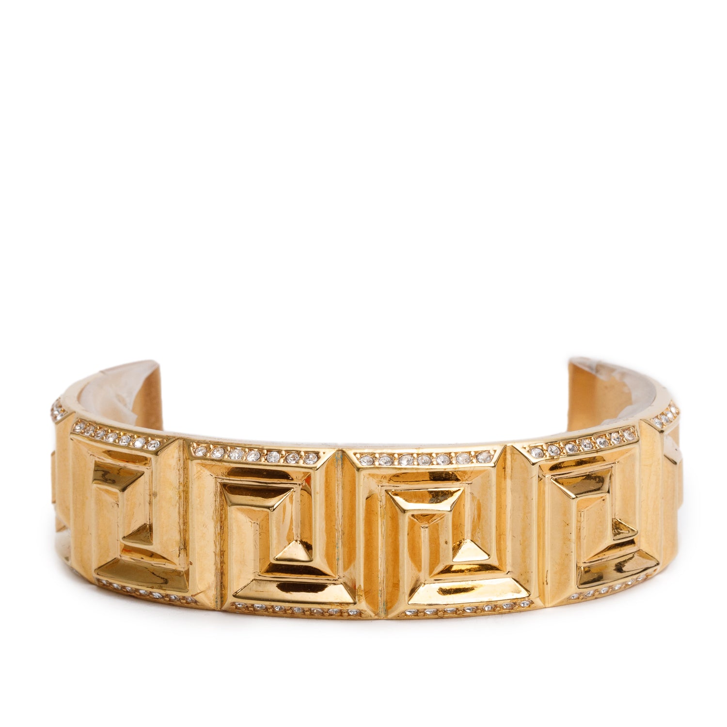 Gold-Plated Crystal Greca Cuff Bracelet w/ Box