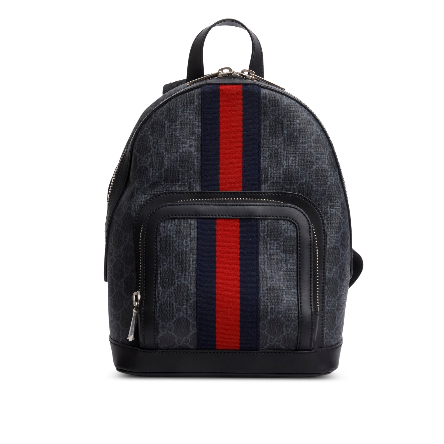 Black GG Supreme Monogram Calfskin Web Small Ophidia Day Backpack w/ Box