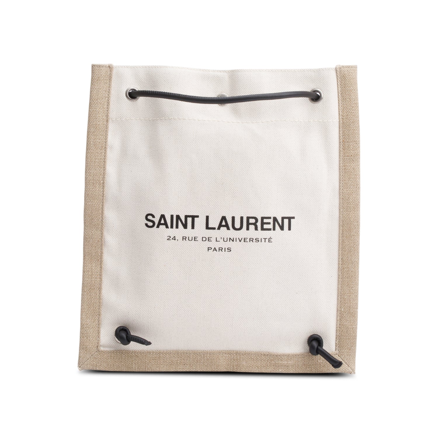 2023 Beige Linen Calfskin Rive Gauche Drawstring Backpack