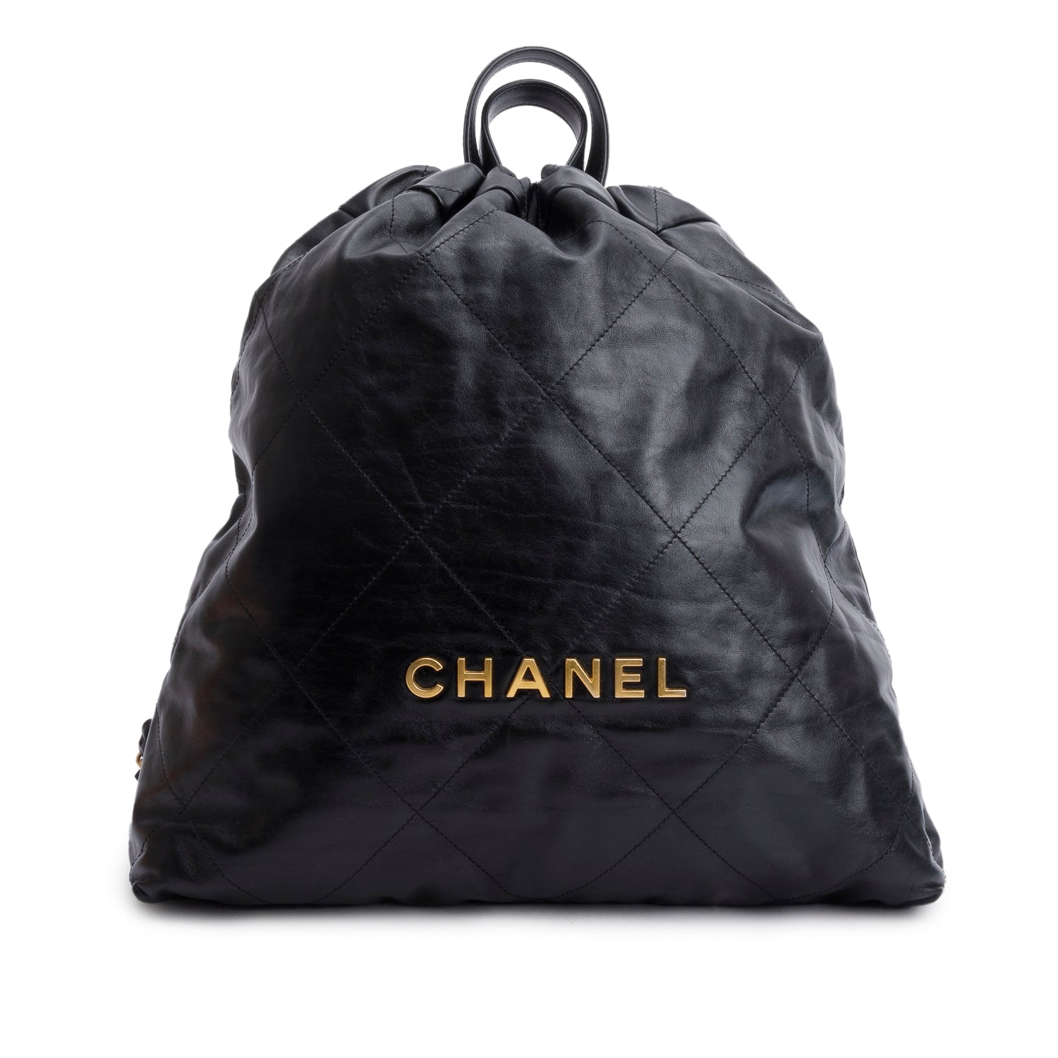 Channel Black Shiny Calfskin Leather 22 Backpack w/ Box