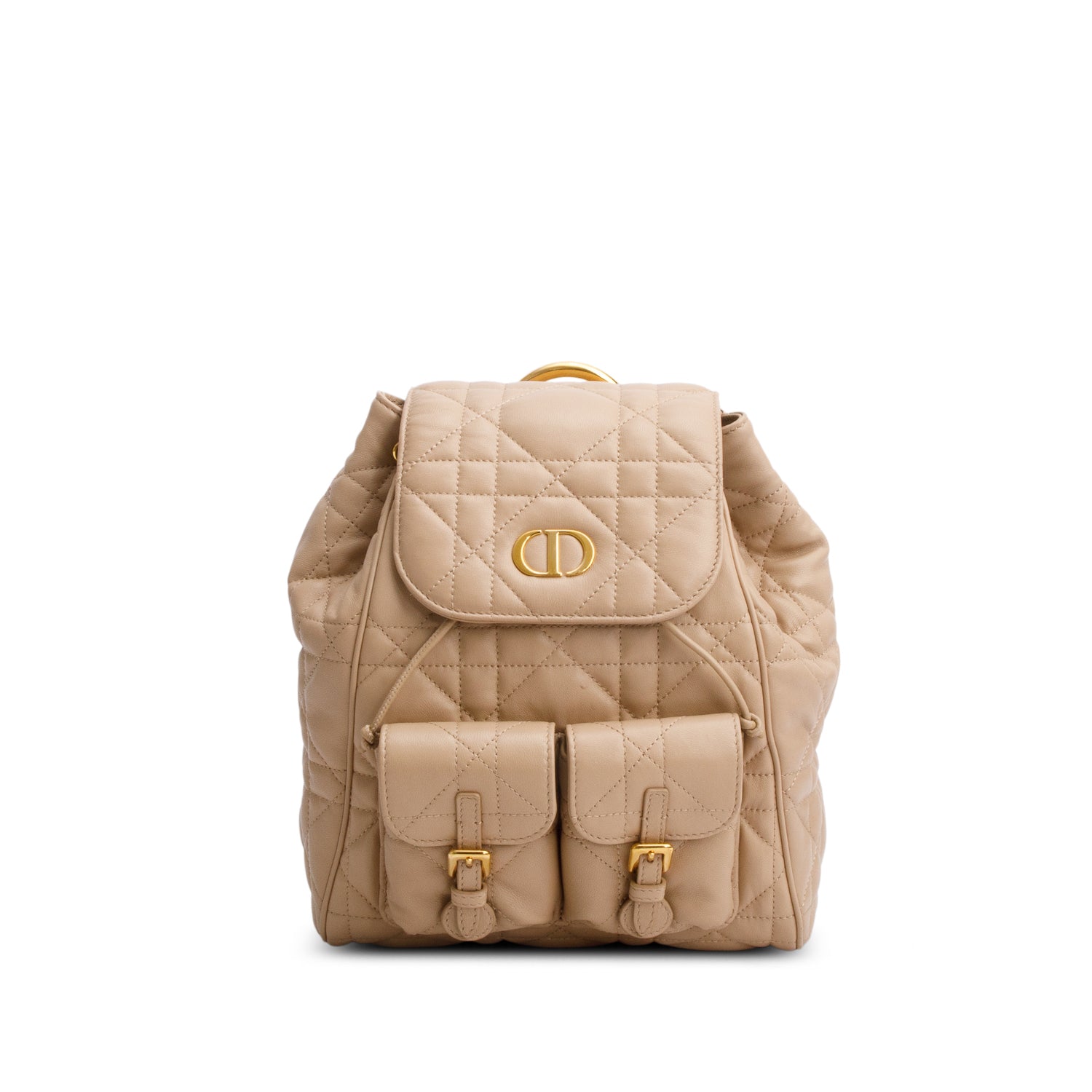 Chrisitan Dior 2024 Beige Lambskin Macrocannage Medium Caro Backpack w/ Box