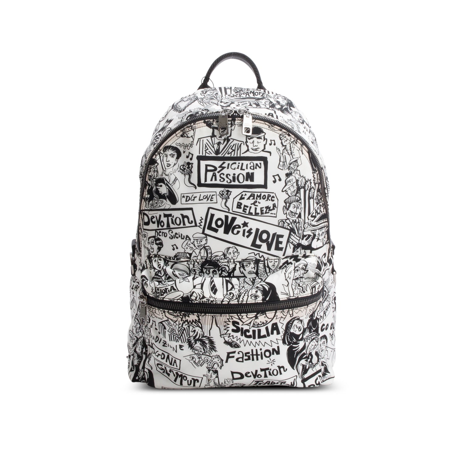 Dolce & Gabbana Black White Nylon Illustrated Backpack