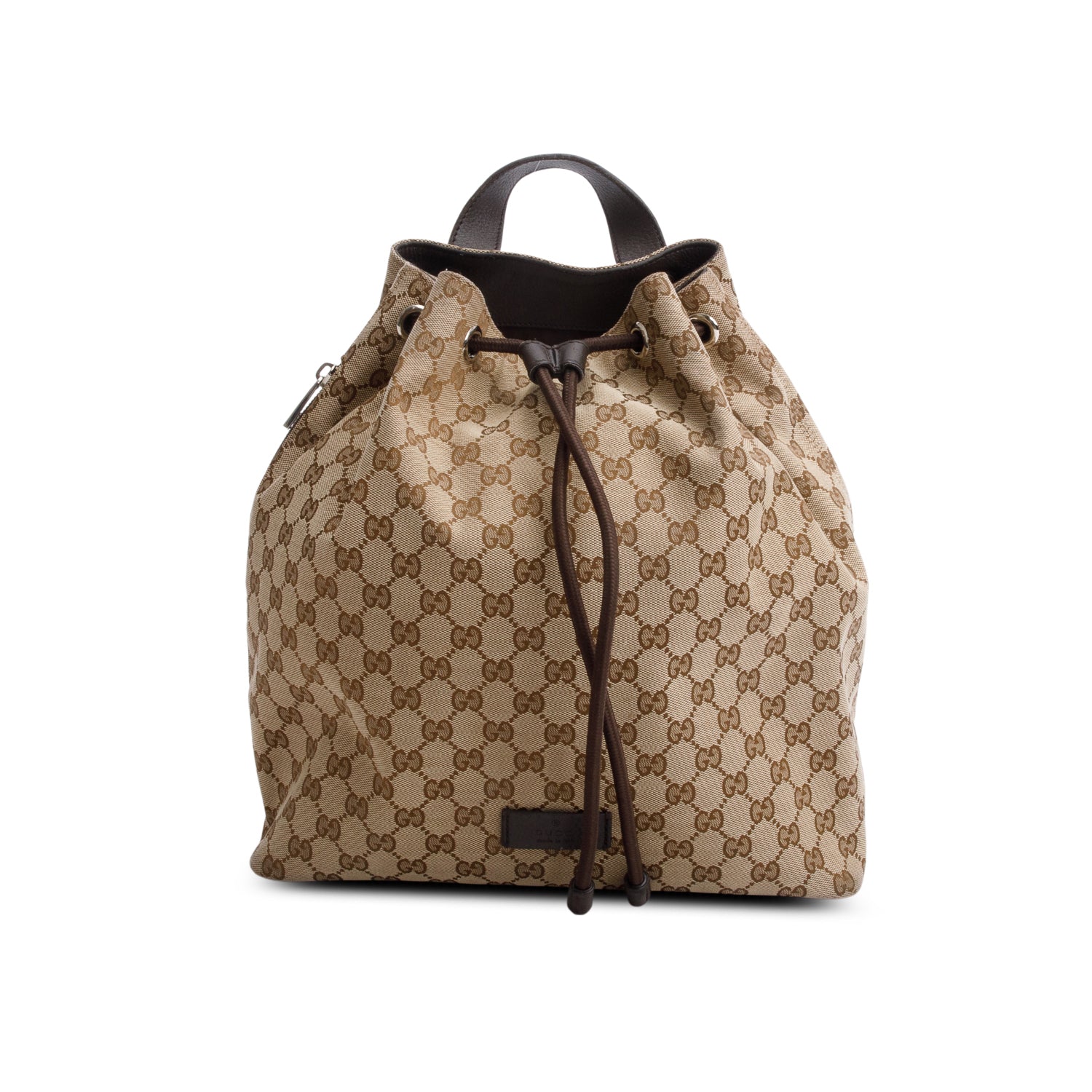 GG Supreme Monogram Neo Vintage Drawstring Bucket Backpack w/ Straps