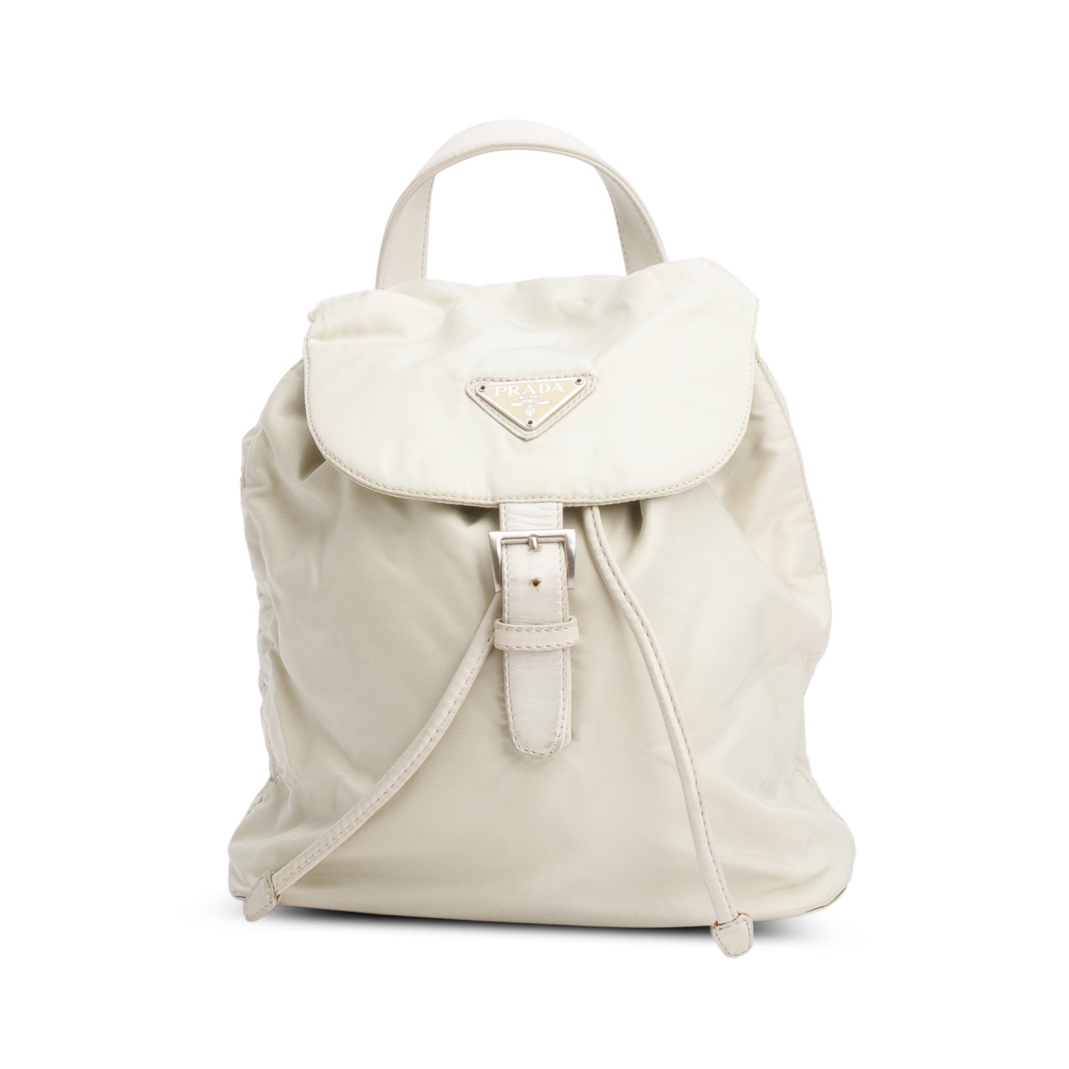 Condition: Good; slight scratches at hardware; moderate creasing and discoloration at leather buckles; slight marks at exterior nylon; minor marks at interior.
