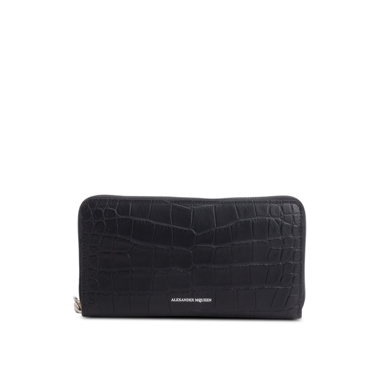 Alexander Mcqueen Black Croc Embossed Continental Zip Wallet w/ Box