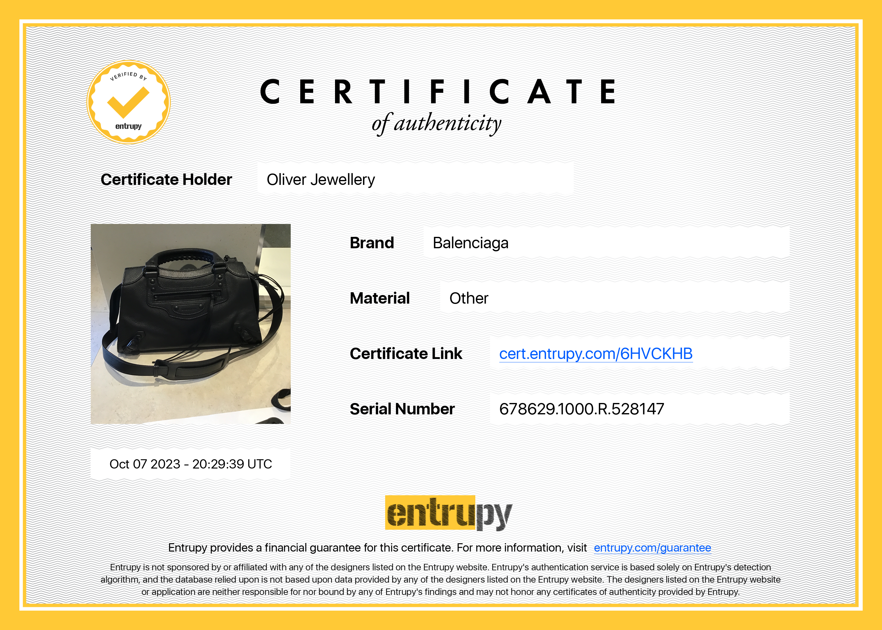Box, Receipt, Dust Bag, Tags, Entrupy Certificate of Authenticity