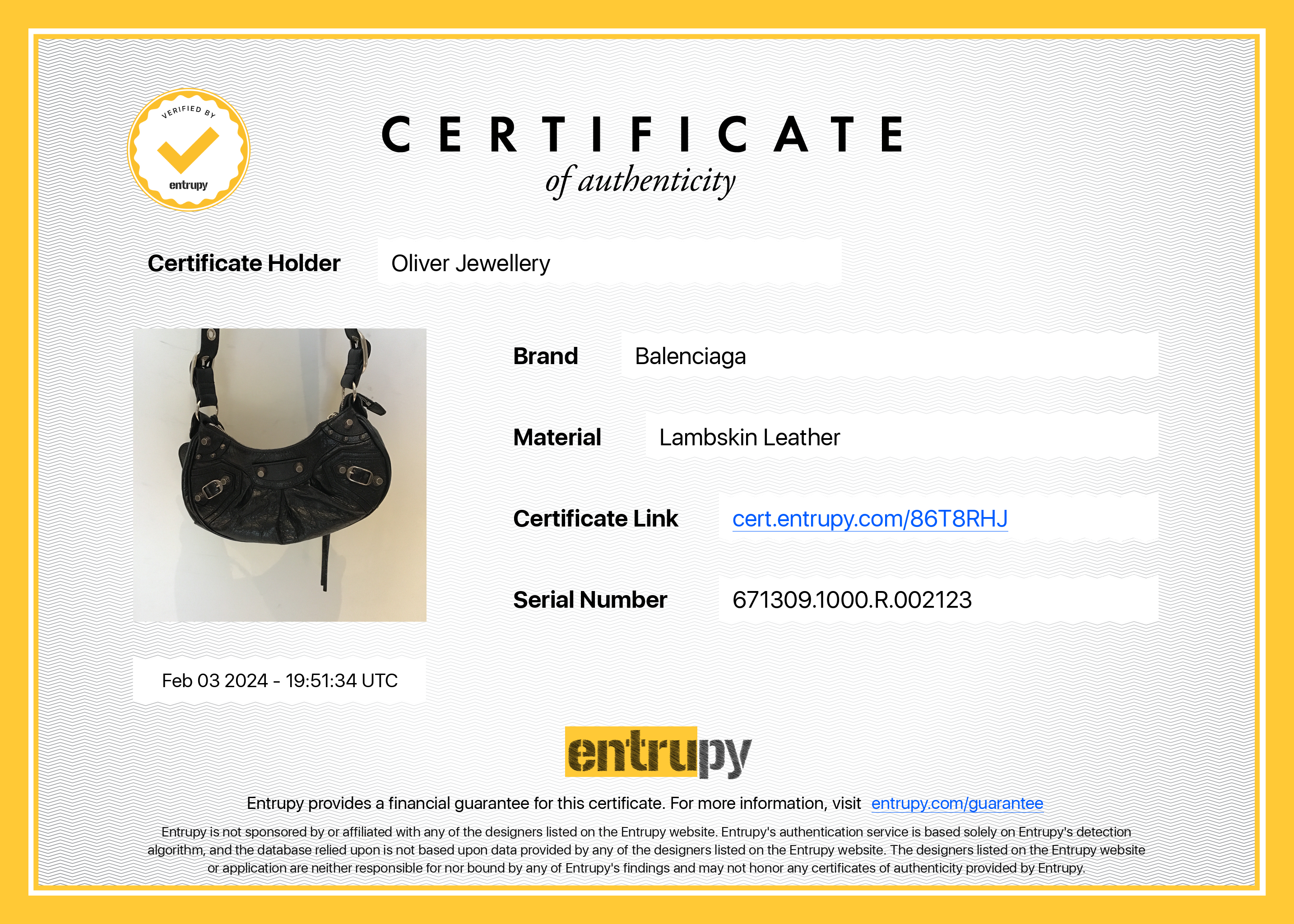 Dust Bag, Zipped Pouch, Detachable Mirror, Entrupy Certificate of Authenticity