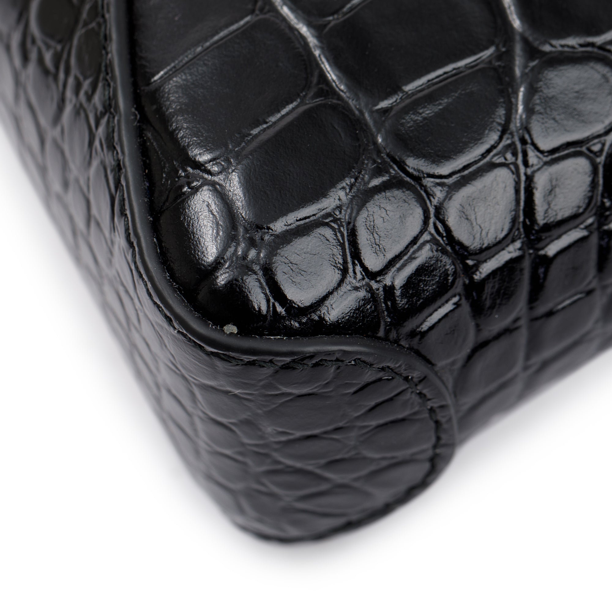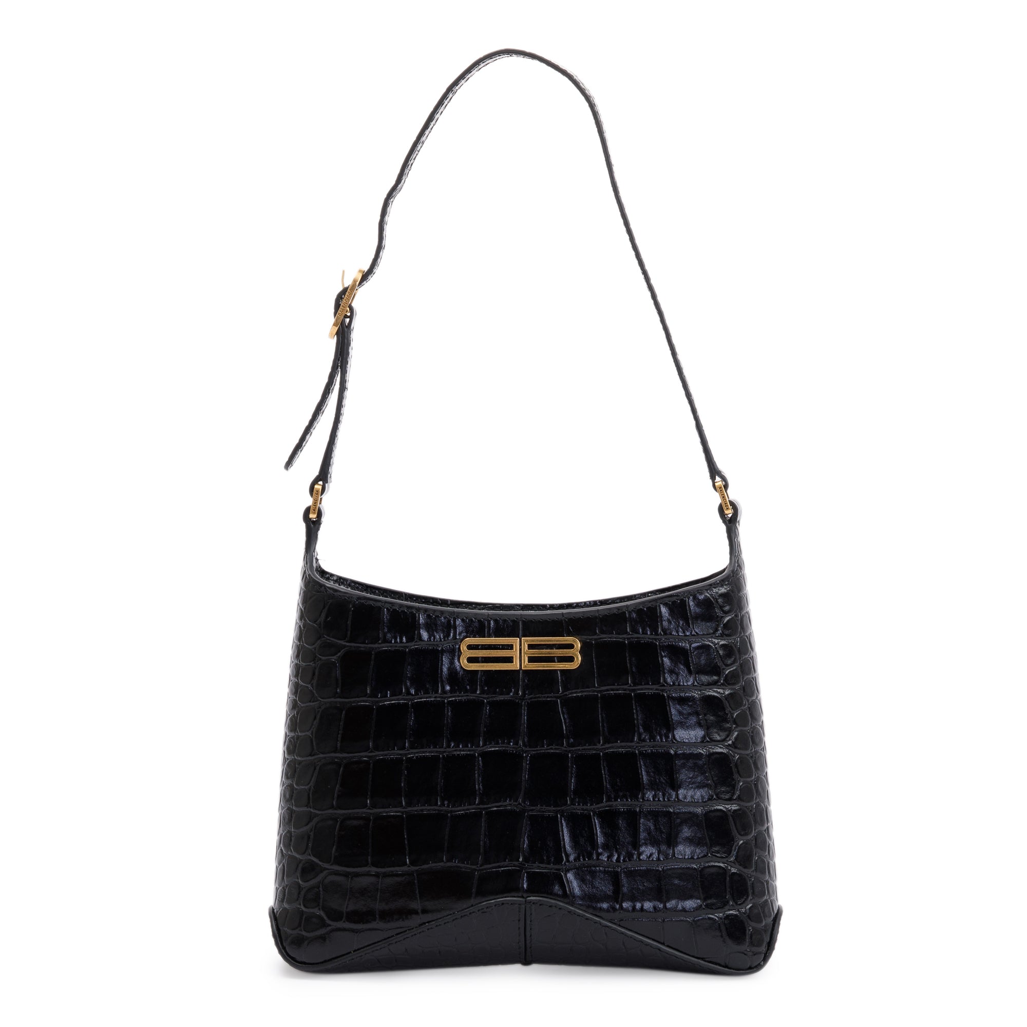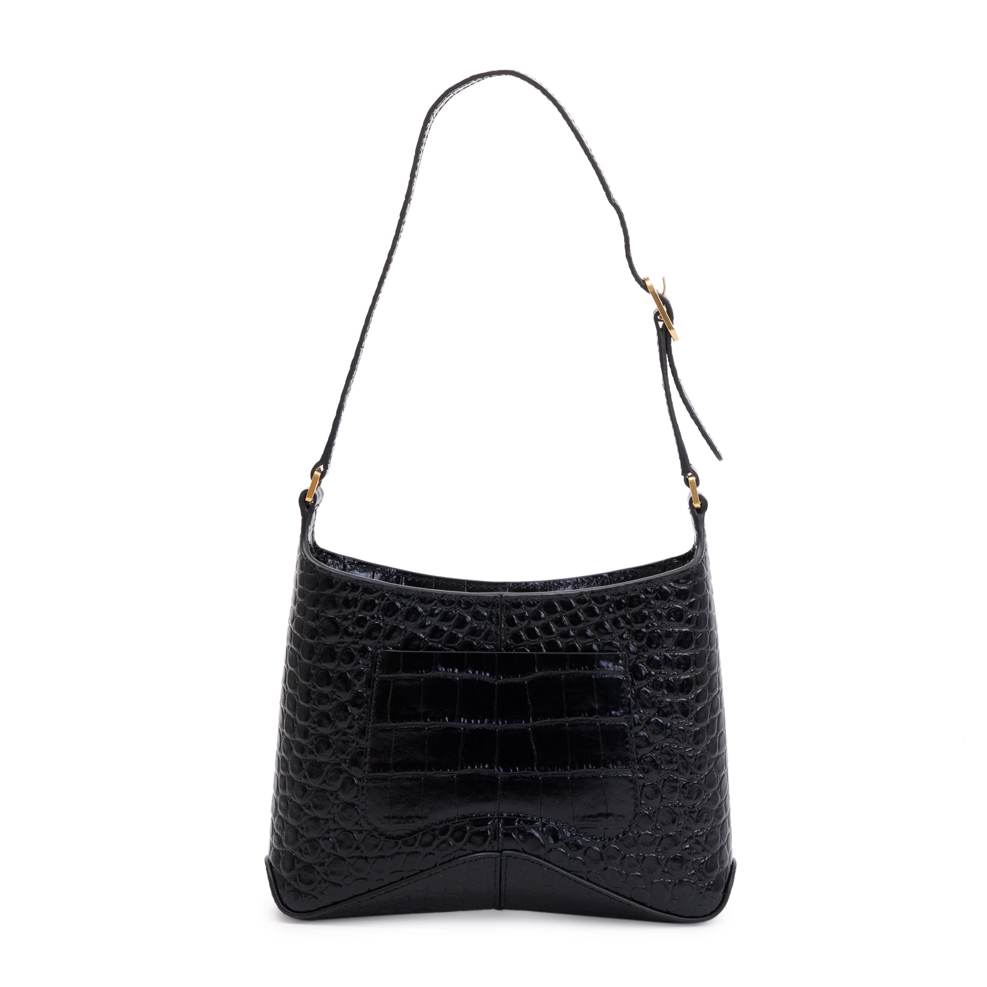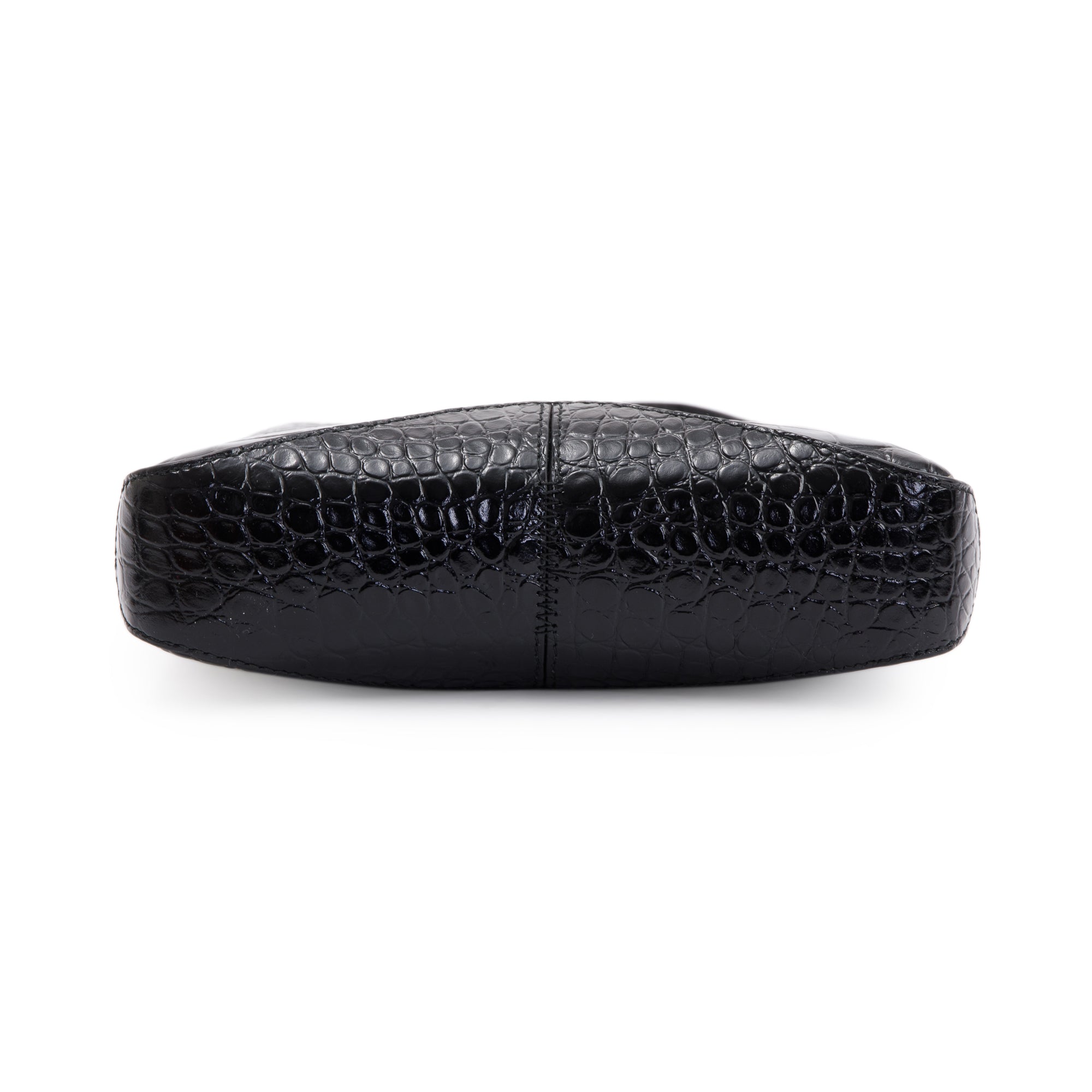 Black Croc-Embossed Leather Xx Small Hobo Bag