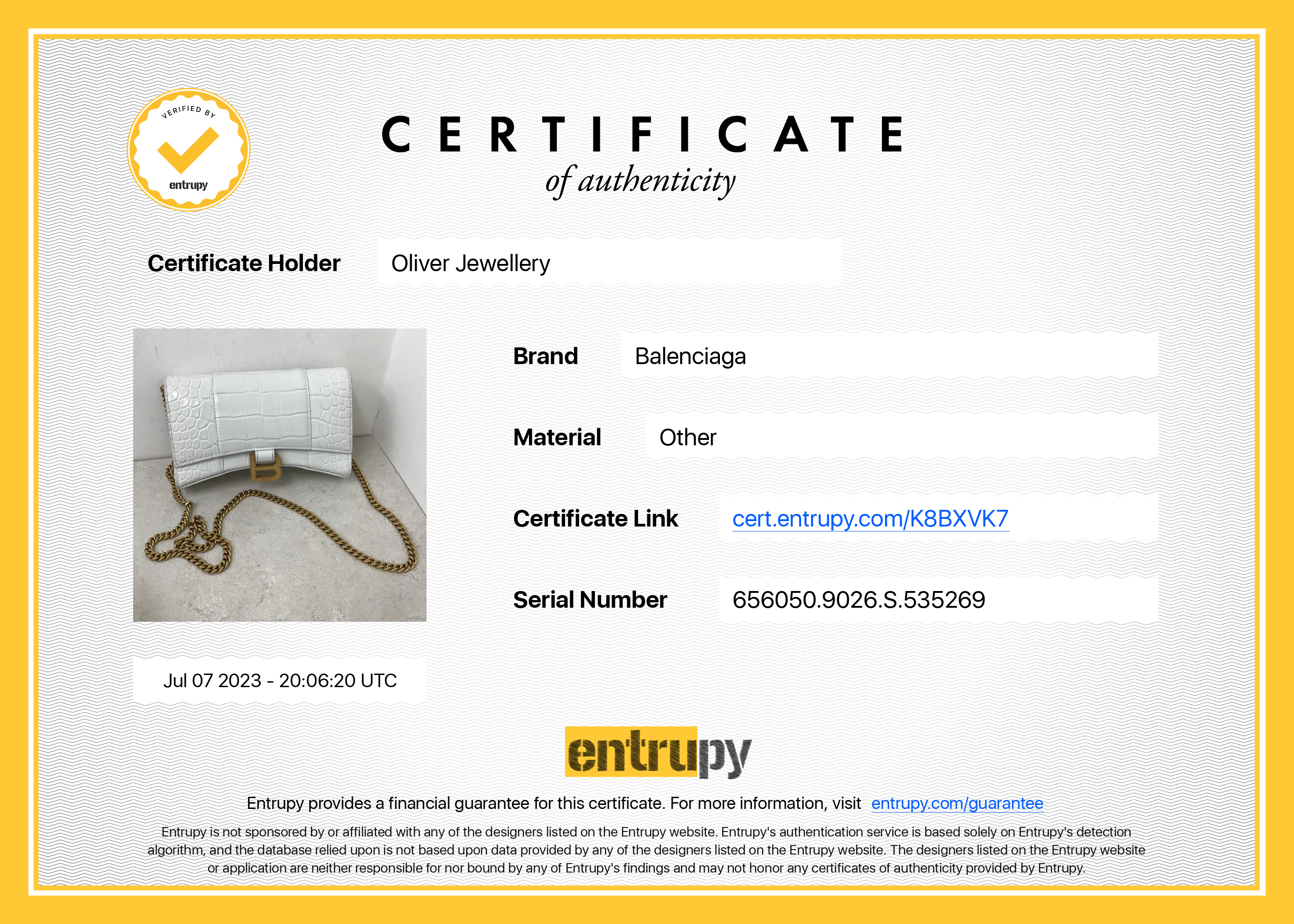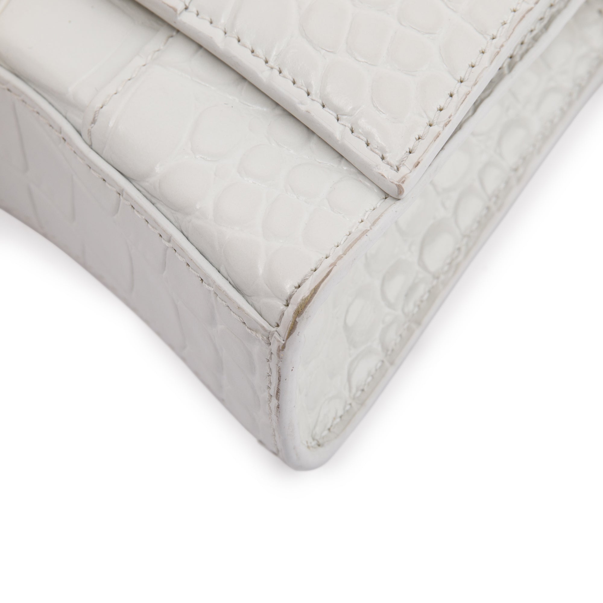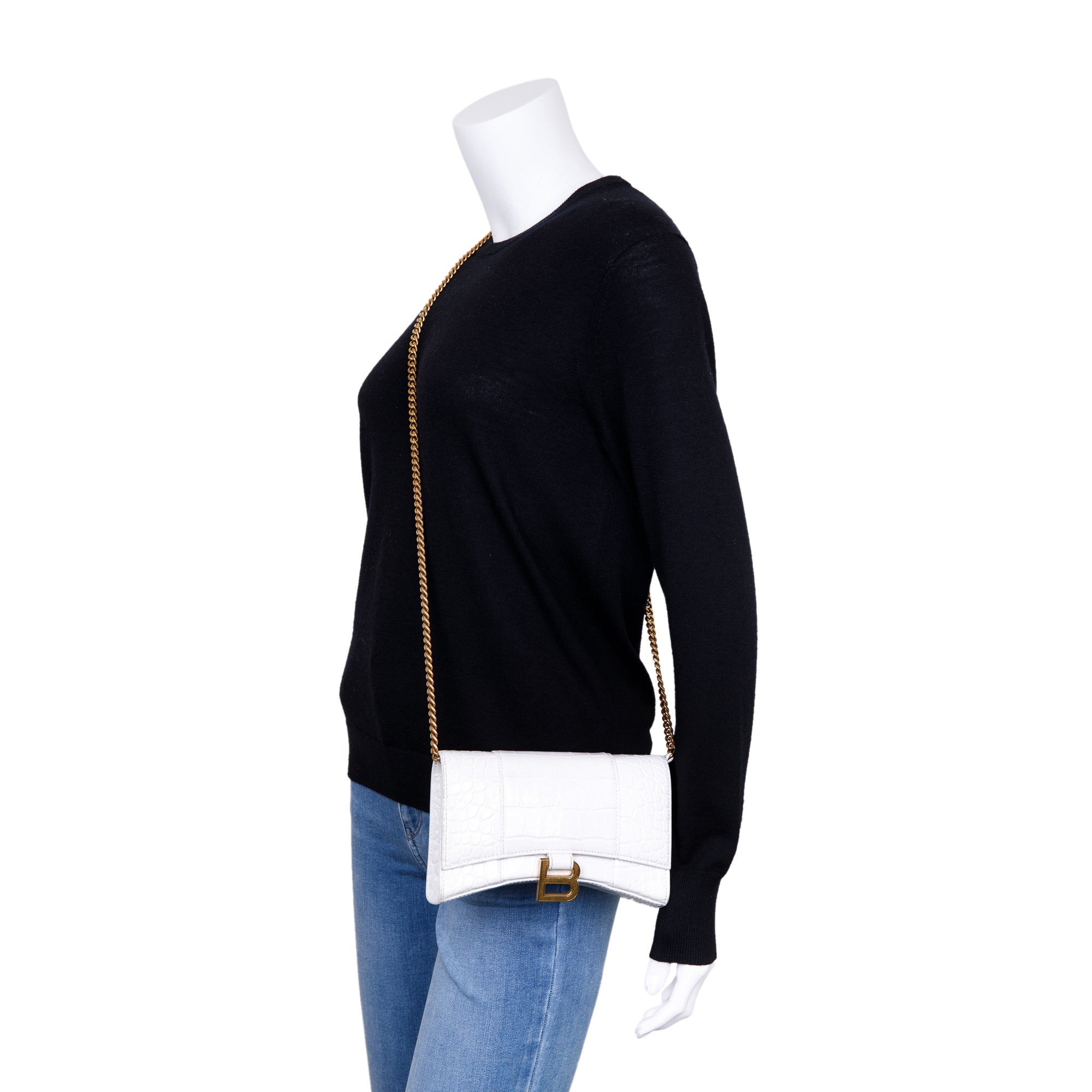 Balenciaga White Crocodile Embossed Hourglass Wallet on Chain