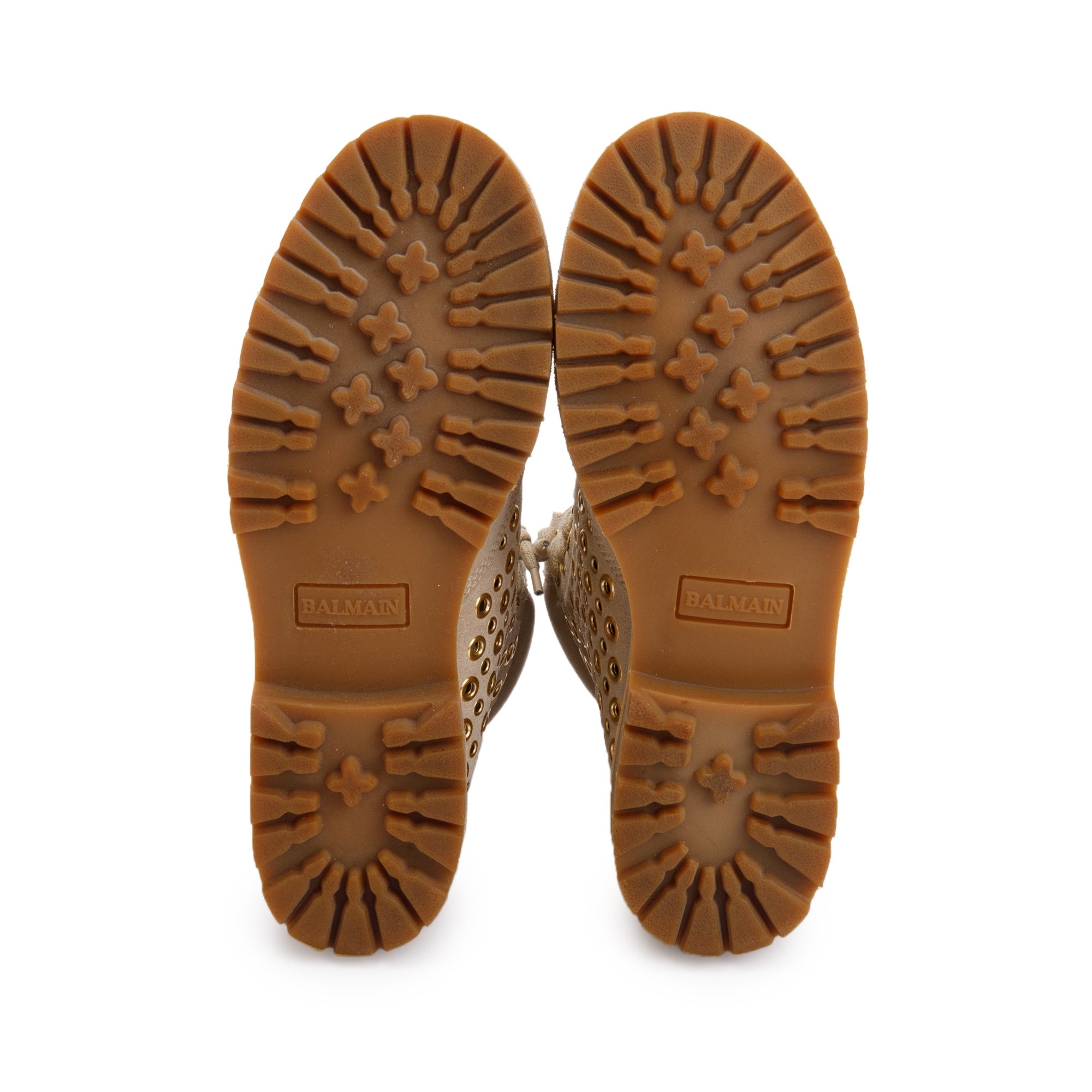 Beige Grommet Perforated Suede Tia Ranger Ankle Boots, Size 39.5 w/ Box