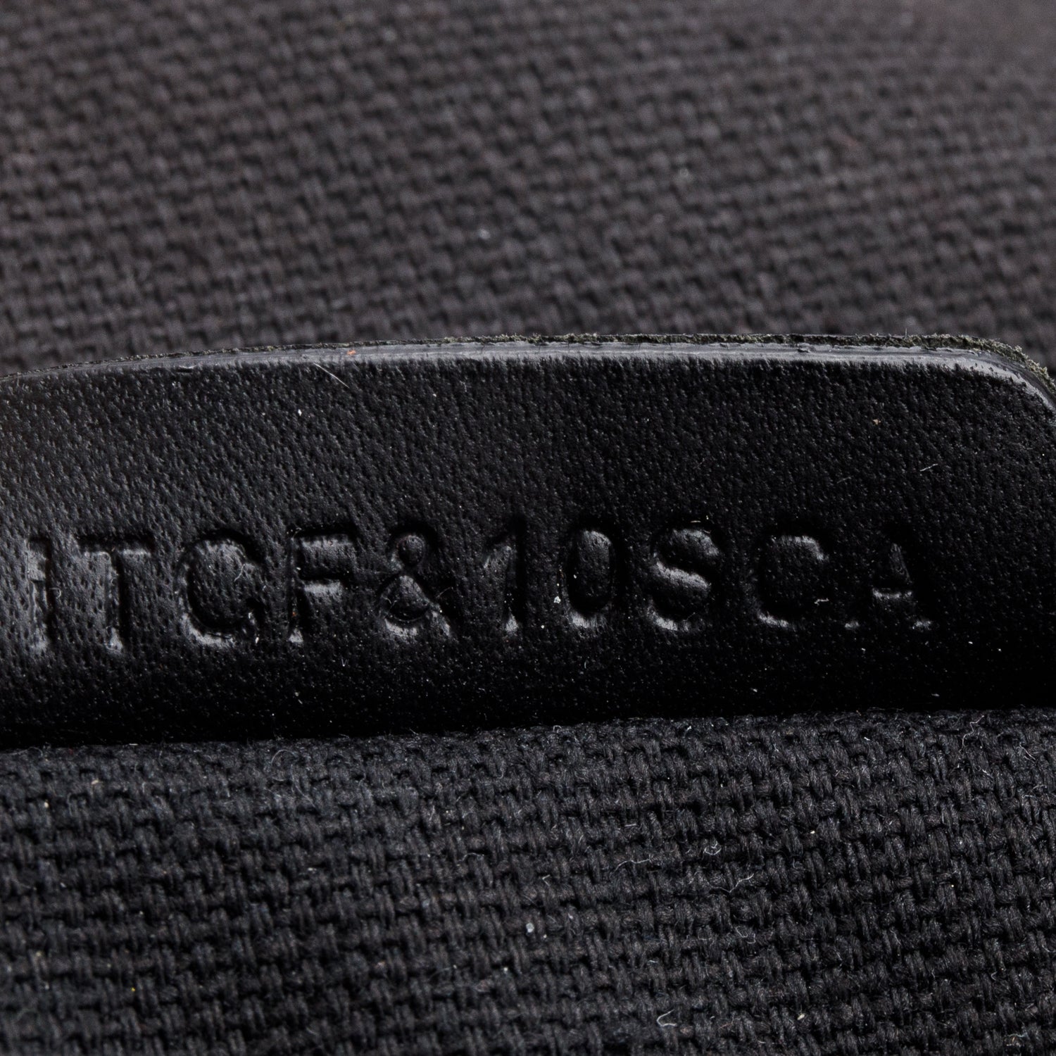 Condition: Good; some scuffing at exterior corners and scratches at exterior leather; slight creasing at leather trim and marks at interior.