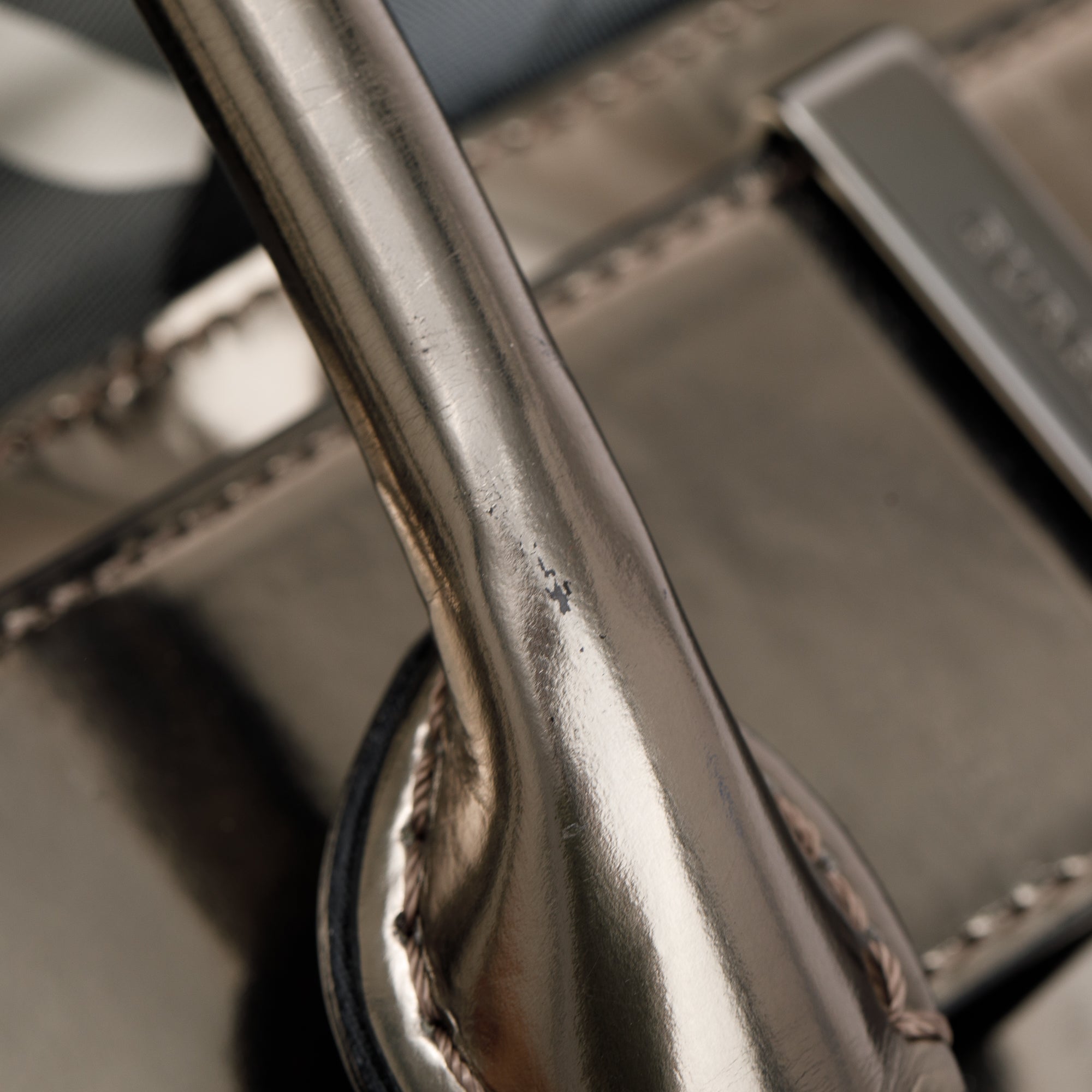 Metallic Grey Patent Leather Trim Beat Check Nylon Easton Landscape Bag