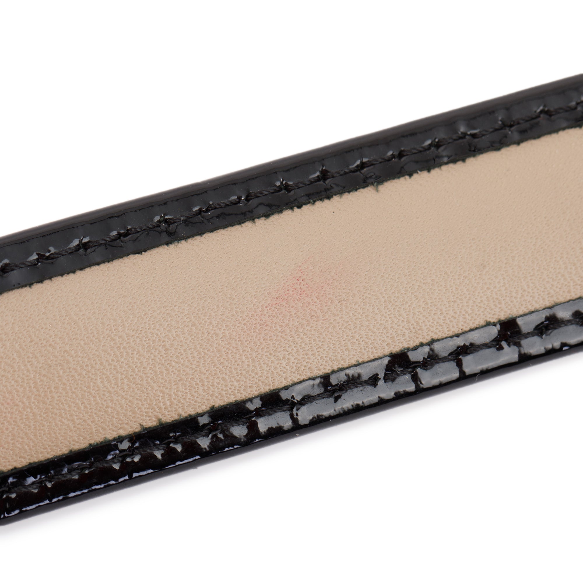 Condition: Good; some scratches at buckle and leather trim; slight scratches and wear at leather