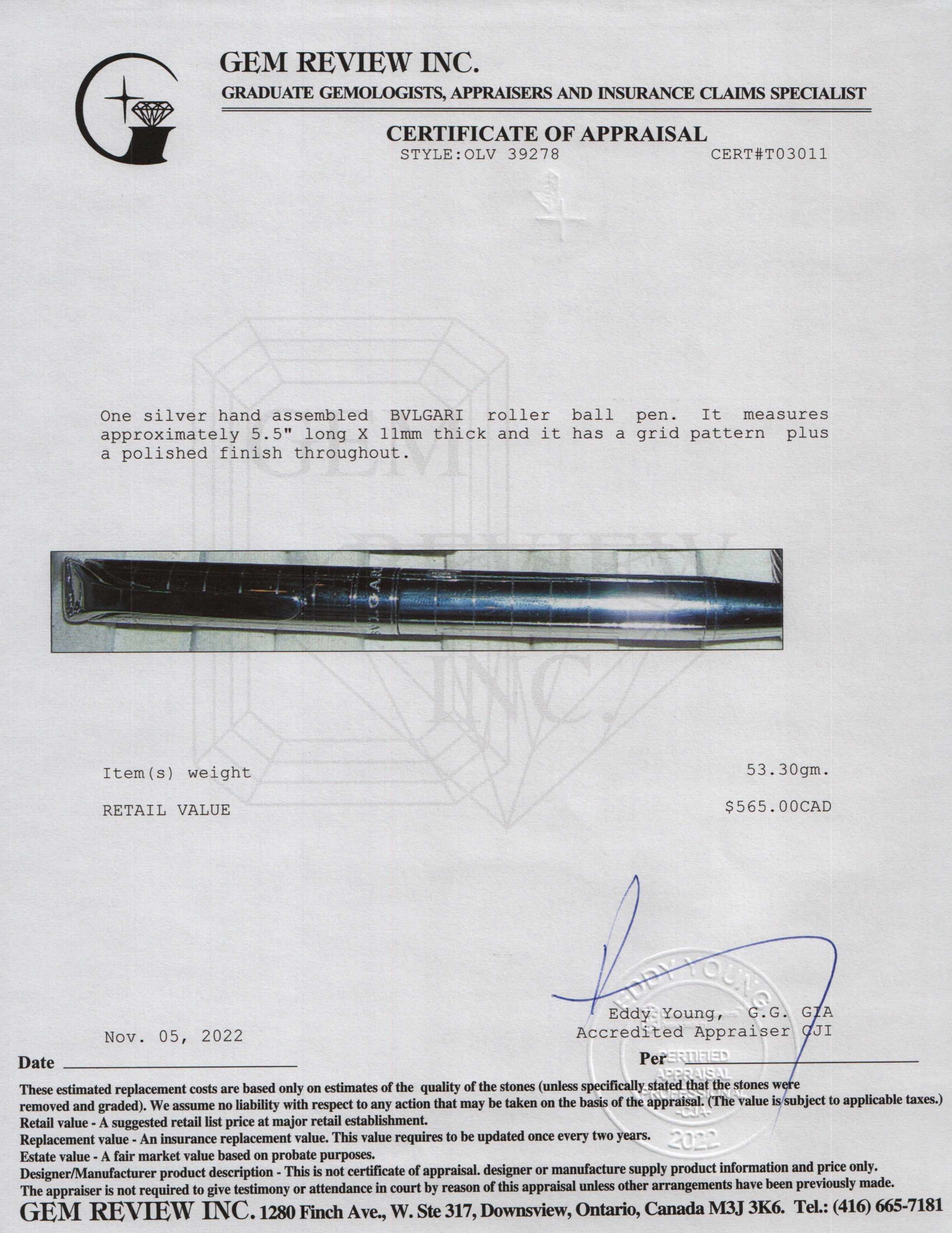 Bvlgari Sterling Silver Rollerball Pen w/ Box