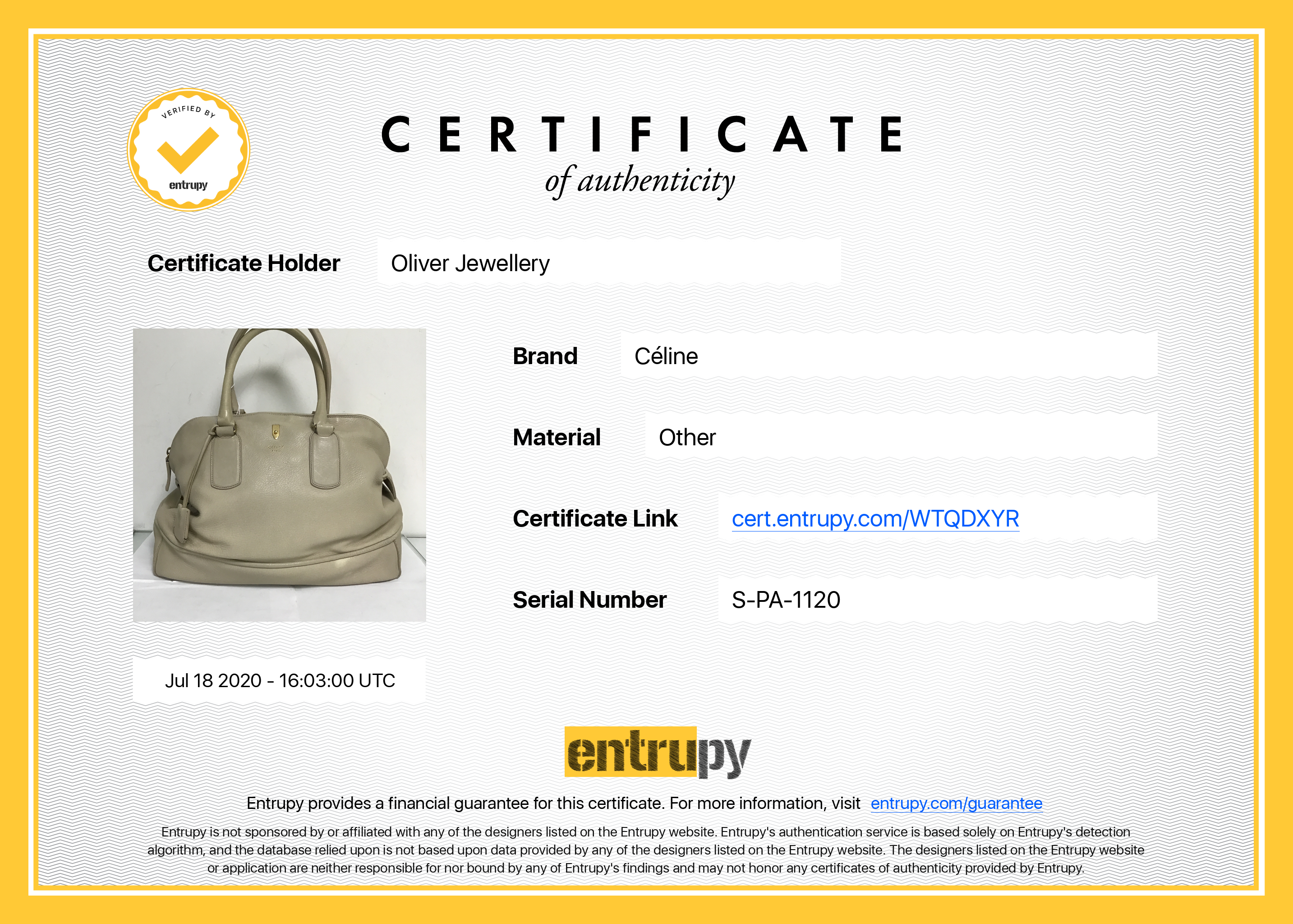 Included Item: Entrupy Certificate of Authenticity #WTQDXYR