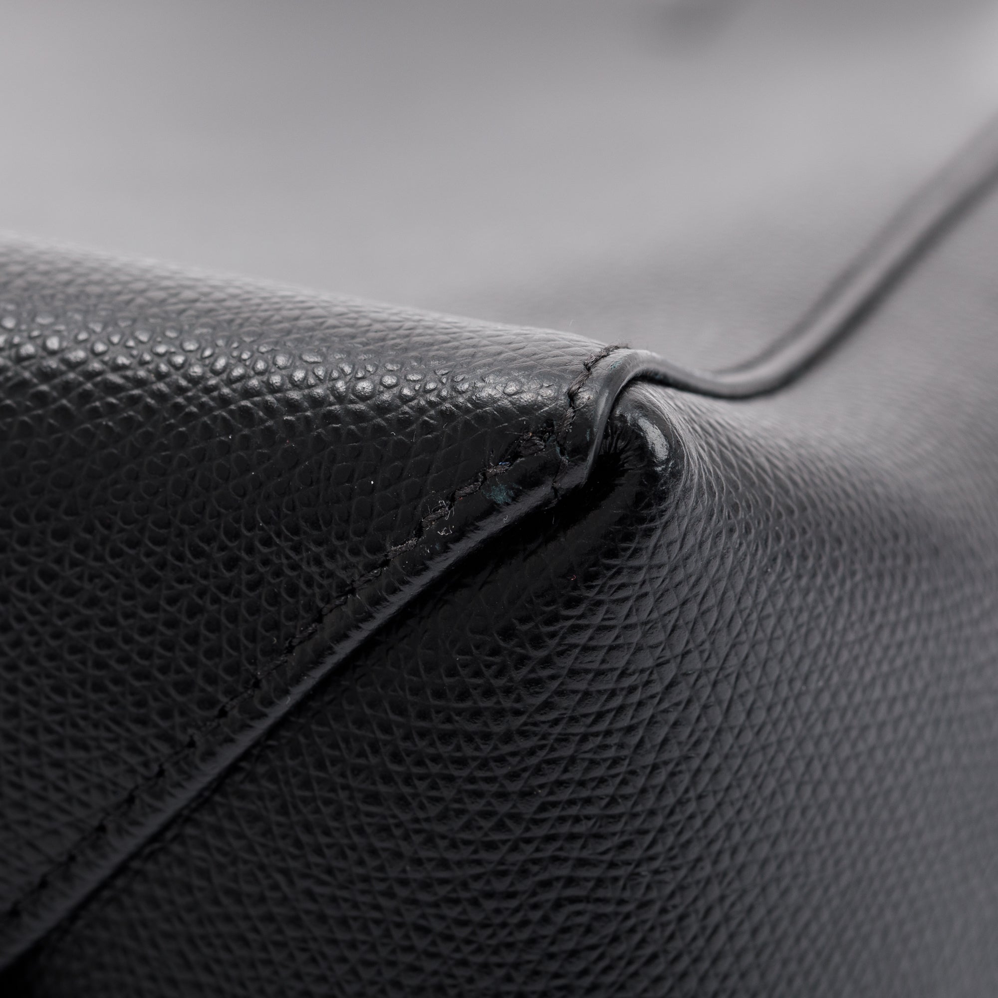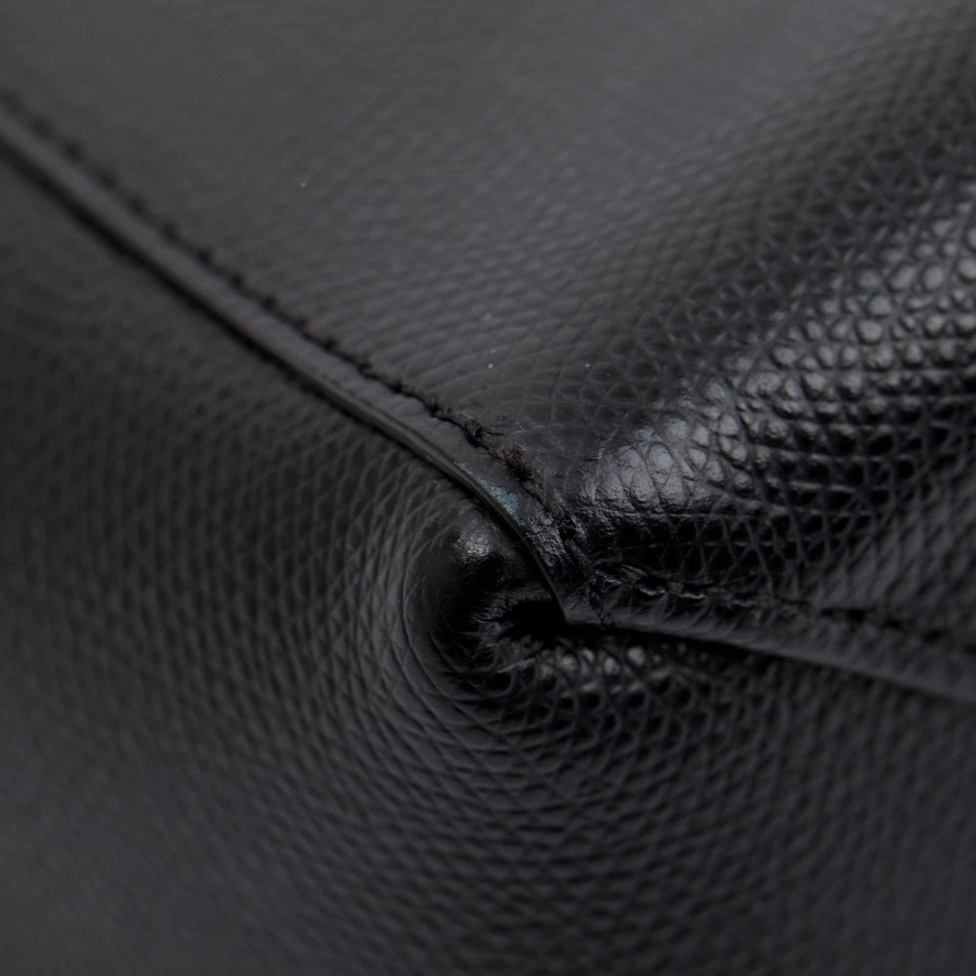 Small Black Grained Calfskin Leather Vertical Cabas Tote w/ Strap