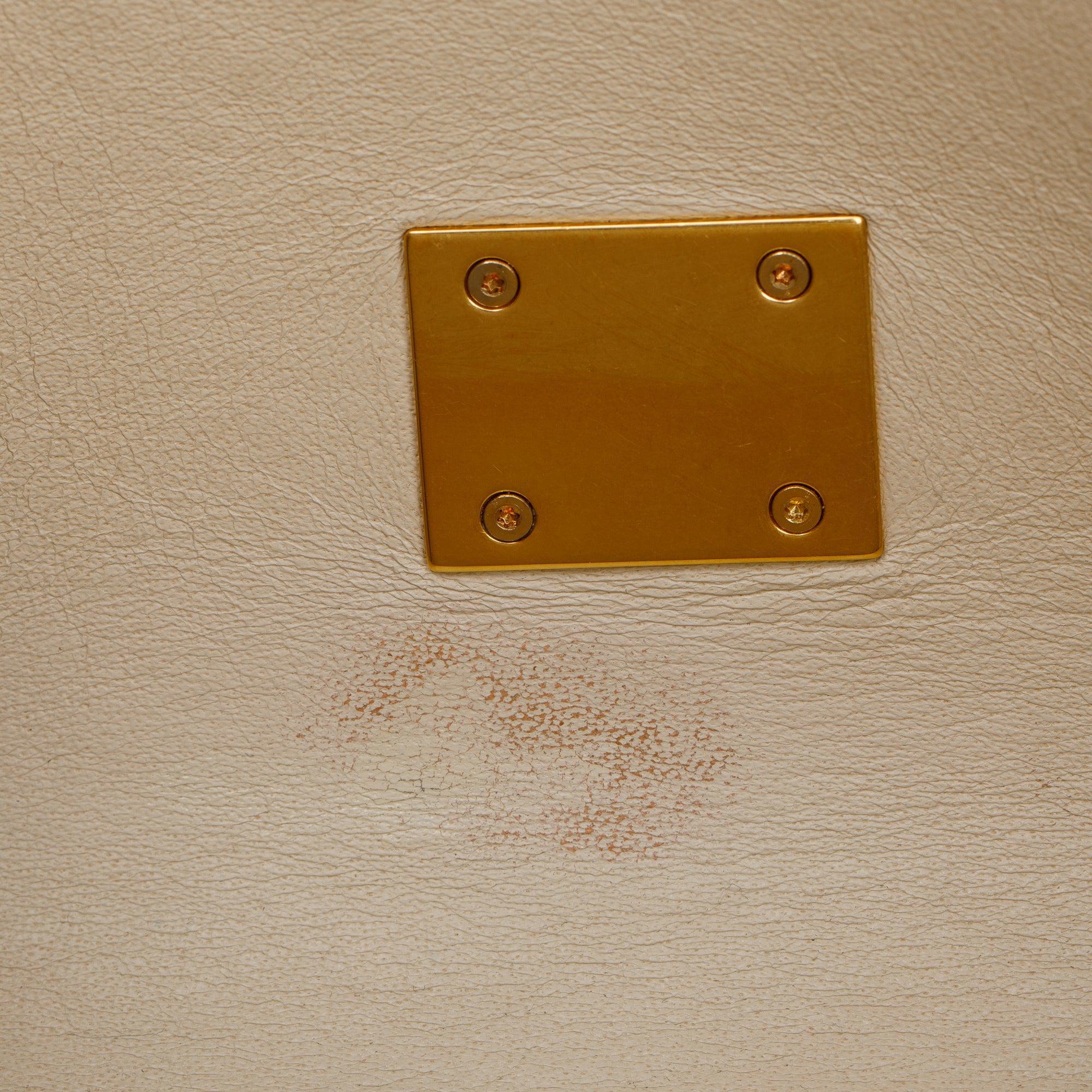 Condition: Good; slight surface scratches at hardware; some scratches throughout exterior leather; slight scratches at interior