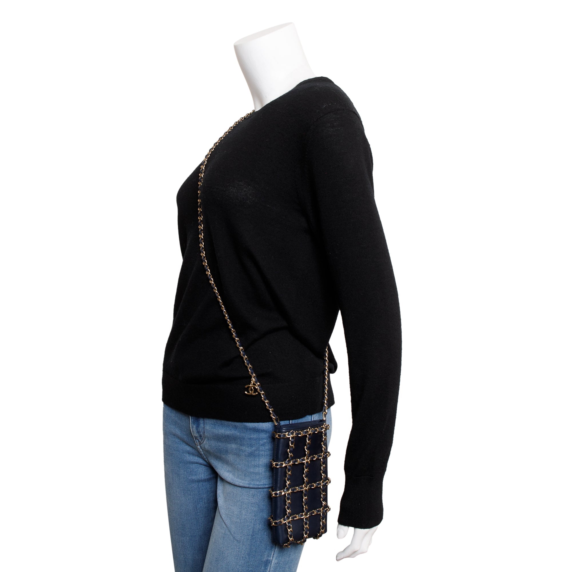 2020 Navy Leather Tech Me Out Clutch With Chain